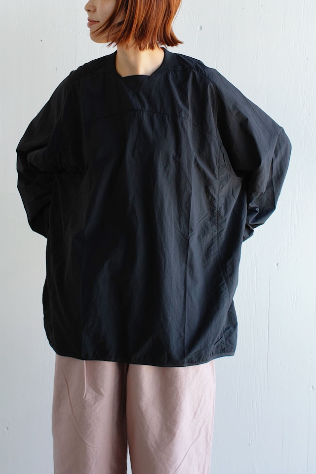 薄手ナイロン素材を使用した仕合衣。 抜群の軽量感と着心地が特徴的で、肌寒い季節でもレイヤーとして重宝します。 しわ感の風合いは個体差あり。 首元は伸縮性のあるリブ素材、袖口はゴムになっているので各々の身体に優しくフィットします。 伊吹染めを使用しており、機械では出せないふくらみ感や発色が特徴です。 ワンウォッシュ済なのでご自宅でのお洗濯が可能。 brand : 5W material: nylon 100% color: Black size(cm) SIZE(2): 着丈74 / 身幅62 / 裄丈80(cm) ※モデル身長:160cm ※サイズは平置きにて計測 ※サイズは多少の誤差があることがございます。 商品について気になる点がございましたらお気軽にお問い合わせください。 ◼️5W(ファイブダブル) 秋田を拠点に活動するデザイナーの小野諭氏が手がけるユニセックスのリラックスウエアブランド。Relax, Modern, Japanをコンセプトにシルエットの美しさ、素材やディテールにこだわり抜いたアイテムを展開しています。