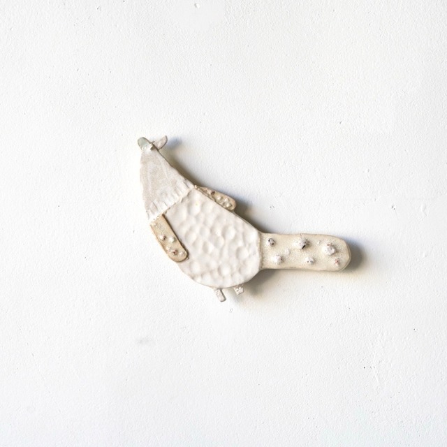 小平健一 bird 一つ一つが個性を持った一点ものの鳥の壁掛け。 裏面には木材と金属を組み合わせたパーツが取り付けられており、フックなどに掛けることができます。 artist : Kenichi Kodaira material:ceramic size(cm):W26 H13.5 D2.5(Dは裏面のパーツを含む) Artist 小平健一 Kenichi Kodaira 岐阜県在住の陶造形家 Kenichi Kodaira is a ceramic artist based in Gifu. 以下、2025年12月に新町ビルにて開催したKenichi Kodaira solo exhibition "holiday bird" ステートメントより 岐阜県多治見市を拠点に活動する陶造形家 小平健一の個展を新町ビル1階にて開催いたします。 器を作る素材や技法から着想を得て生まれる鳥たちは、板状にした粘土のパーツの組み合わせから一羽ずつに形が与えられます。そこに模様や色彩、表情や質感が浮かび上がることで、唯一無二の個性が吹き込まれていきます。人の多様さにも重なる鳥たちは、世代や文化を超えてそれぞれの街に羽ばたいて来ました。 今展では季節の移り変わりを伝える存在であり、終わりと始まりを告げる鳥たち。光り輝く祝祭の煌めきや安らぎを感じる街。その背後に潜む静寂や孤独、賑わいの後に訪れる余白。小平さんの鳥たちは、光と影を行き来しながら見る人それぞれに灯りを運んでくれる、小さな祝福のかたちなのかもしれません。 サイズは、壁に掛けた際の最長部を計測しています。 商品について気になる点がございましたらお気軽にお問い合わせください。