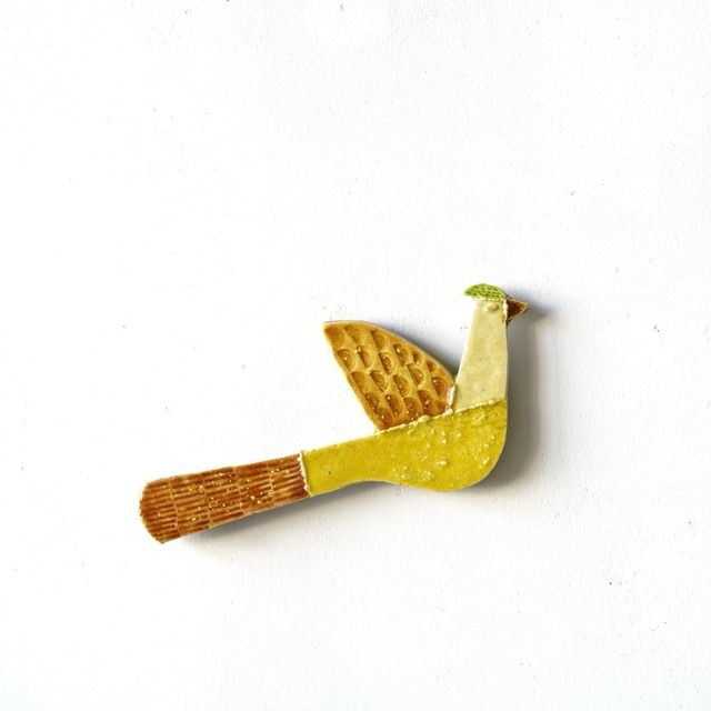 小平健一 bird 一つ一つが個性を持った一点ものの鳥の壁掛け。 裏面には木材と金属を組み合わせたパーツが取り付けられており、フックなどに掛けることができます。 artist : Kenichi Kodaira material:ceramic size(cm):W25.5 H10 D2.5(Dは裏面のパーツを含む) Artist 小平健一 Kenichi Kodaira 岐阜県在住の陶造形家 Kenichi Kodaira is a ceramic artist based in Gifu. 以下、2025年12月に新町ビルにて開催したKenichi Kodaira solo exhibition "holiday bird" ステートメントより 岐阜県多治見市を拠点に活動する陶造形家 小平健一の個展を新町ビル1階にて開催いたします。 器を作る素材や技法から着想を得て生まれる鳥たちは、板状にした粘土のパーツの組み合わせから一羽ずつに形が与えられます。そこに模様や色彩、表情や質感が浮かび上がることで、唯一無二の個性が吹き込まれていきます。人の多様さにも重なる鳥たちは、世代や文化を超えてそれぞれの街に羽ばたいて来ました。 今展では季節の移り変わりを伝える存在であり、終わりと始まりを告げる鳥たち。光り輝く祝祭の煌めきや安らぎを感じる街。その背後に潜む静寂や孤独、賑わいの後に訪れる余白。小平さんの鳥たちは、光と影を行き来しながら見る人それぞれに灯りを運んでくれる、小さな祝福のかたちなのかもしれません。 サイズは、壁に掛けた際の最長部を計測しています。 商品について気になる点がございましたらお気軽にお問い合わせください。