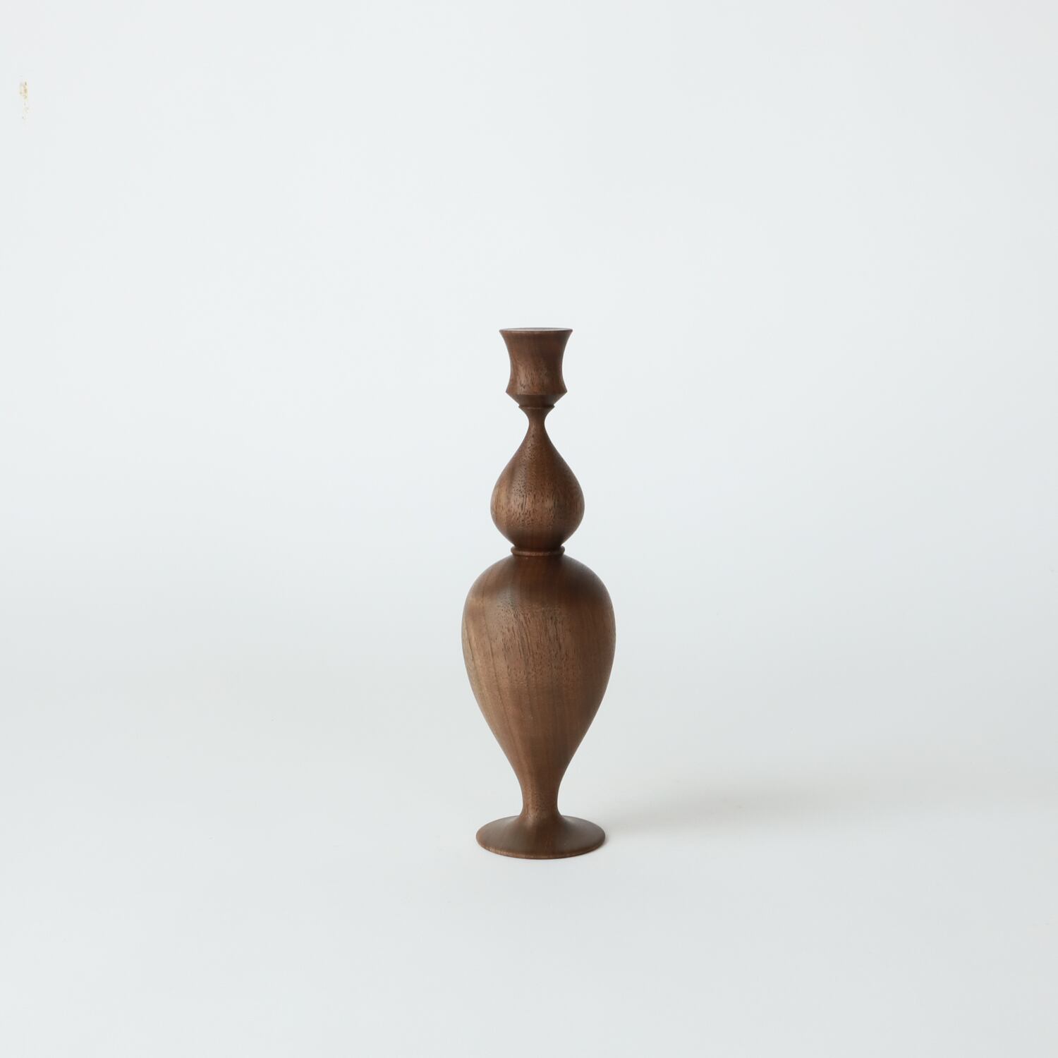 家具製作、仏具制作などを経て暮らしに関わるものづくりをはじめる。現在は木工旋盤により回転させた木を削り出し、1点ずつ異なる形からドライフラワーベースやリングスタンド、オブジェなどの作品を中心に制作しています。節や杢目、色など木の特徴を生かして制作を行なっています。