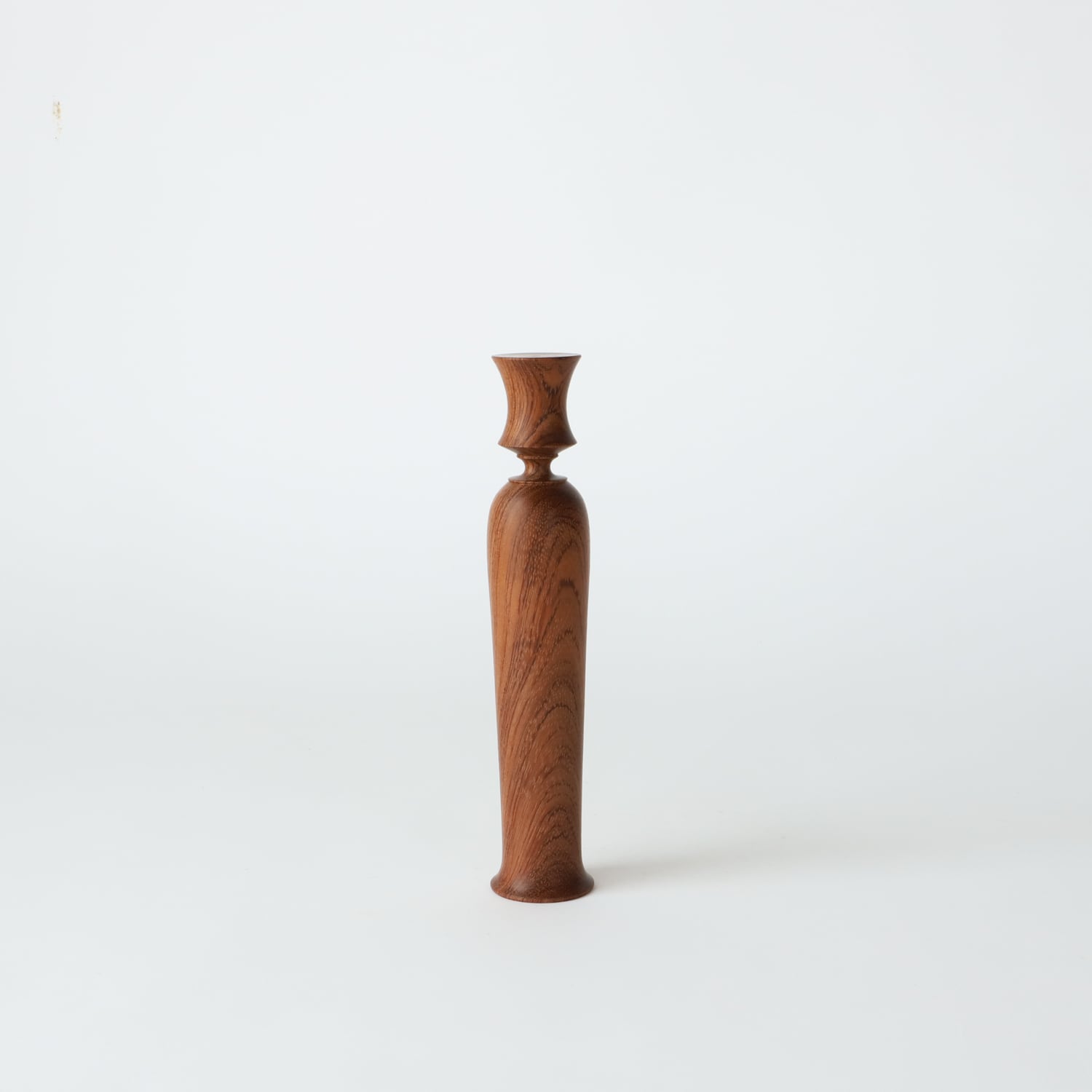 家具製作、仏具制作などを経て暮らしに関わるものづくりをはじめる。現在は木工旋盤により回転させた木を削り出し、1点ずつ異なる形からドライフラワーベースやリングスタンド、オブジェなどの作品を中心に制作しています。節や杢目、色など木の特徴を生かして制作を行なっています。