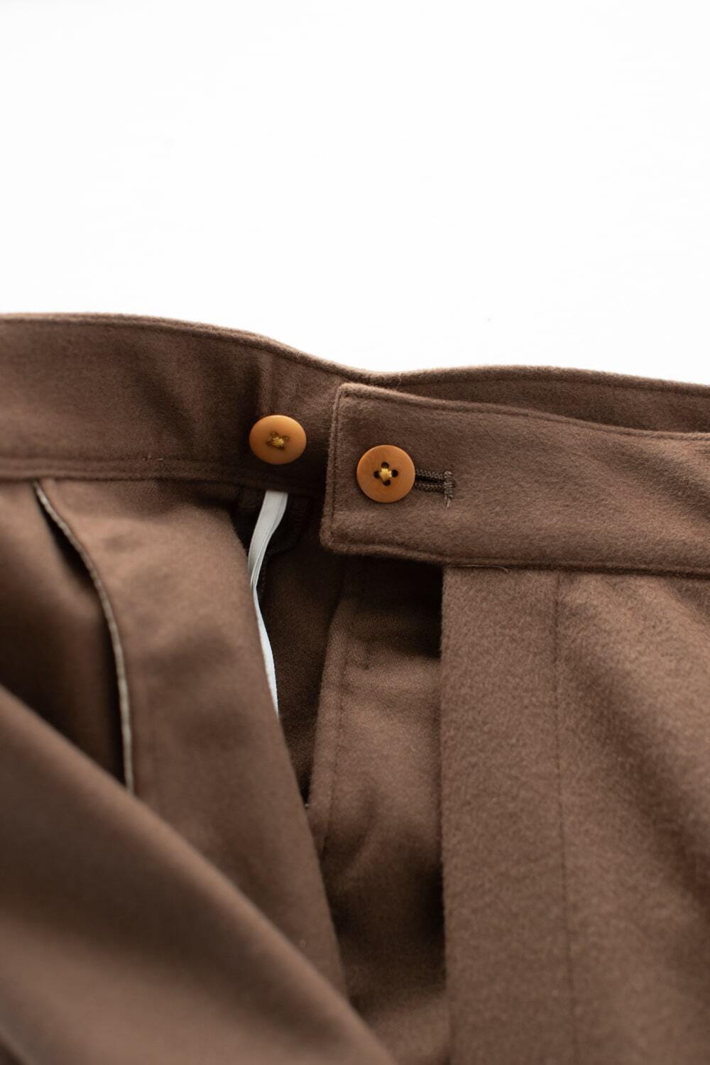 生地にはsuper160’sのラムウールを使用し、丁寧に起毛をさせたショートビーバー仕上げで、滑らかさとしなやかな肌触りを実現しました。
