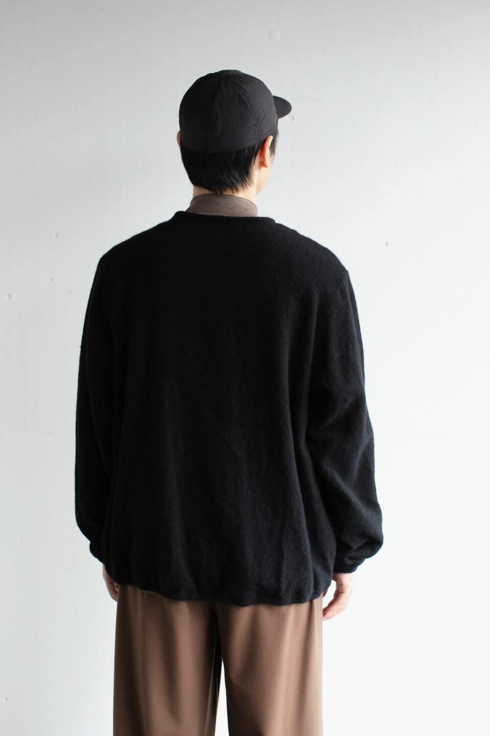 縮絨することでふわっとしたウール生地に仕上がっています。軽くて使いやすいので、室内・室外問わず着用できます。