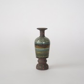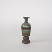 レトロな色合いと模様が施されたボトル。花器としてお使いいただけます。