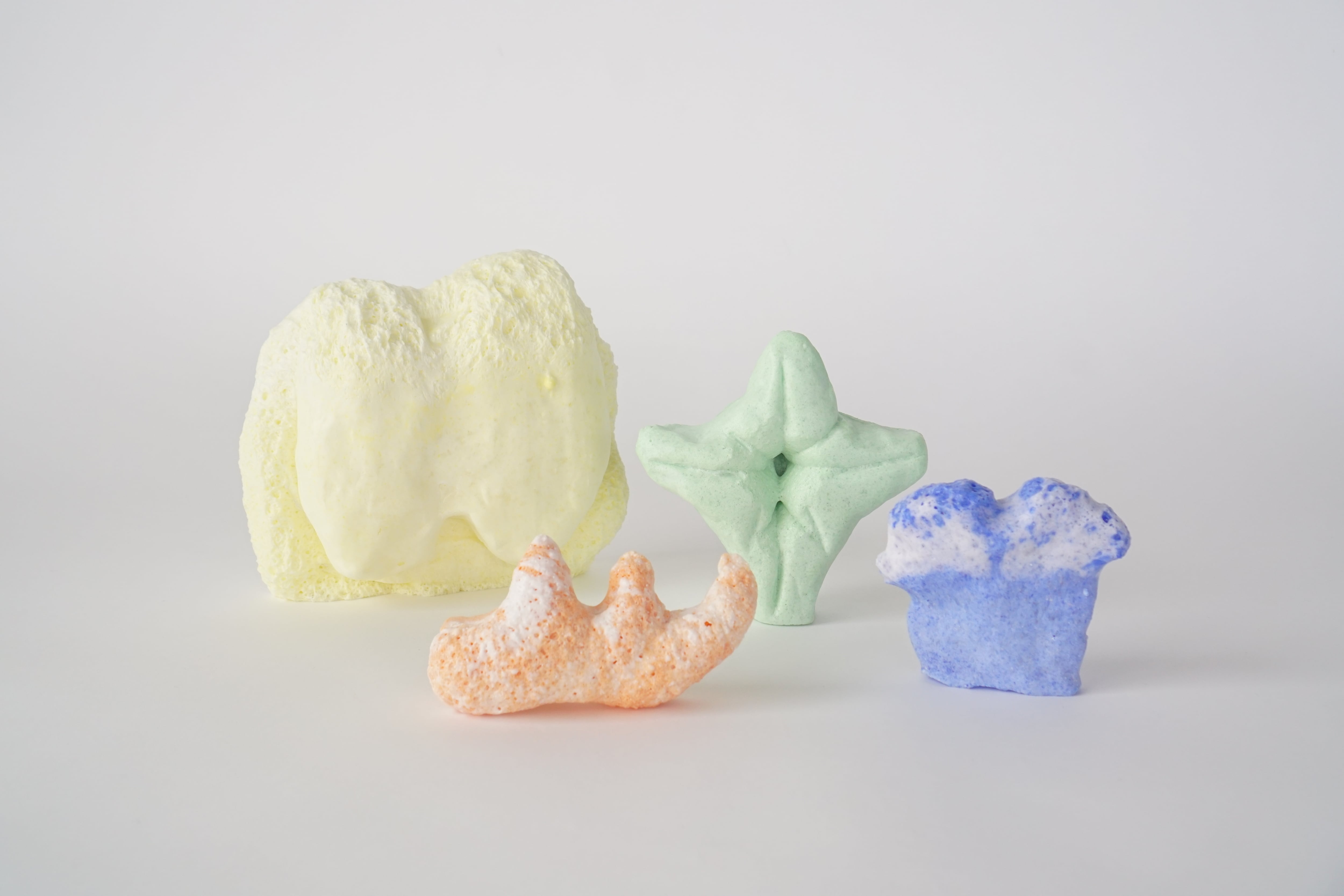 ガラスを発泡させて制作しているため質量は軽く、柔らかな印象の作品です。