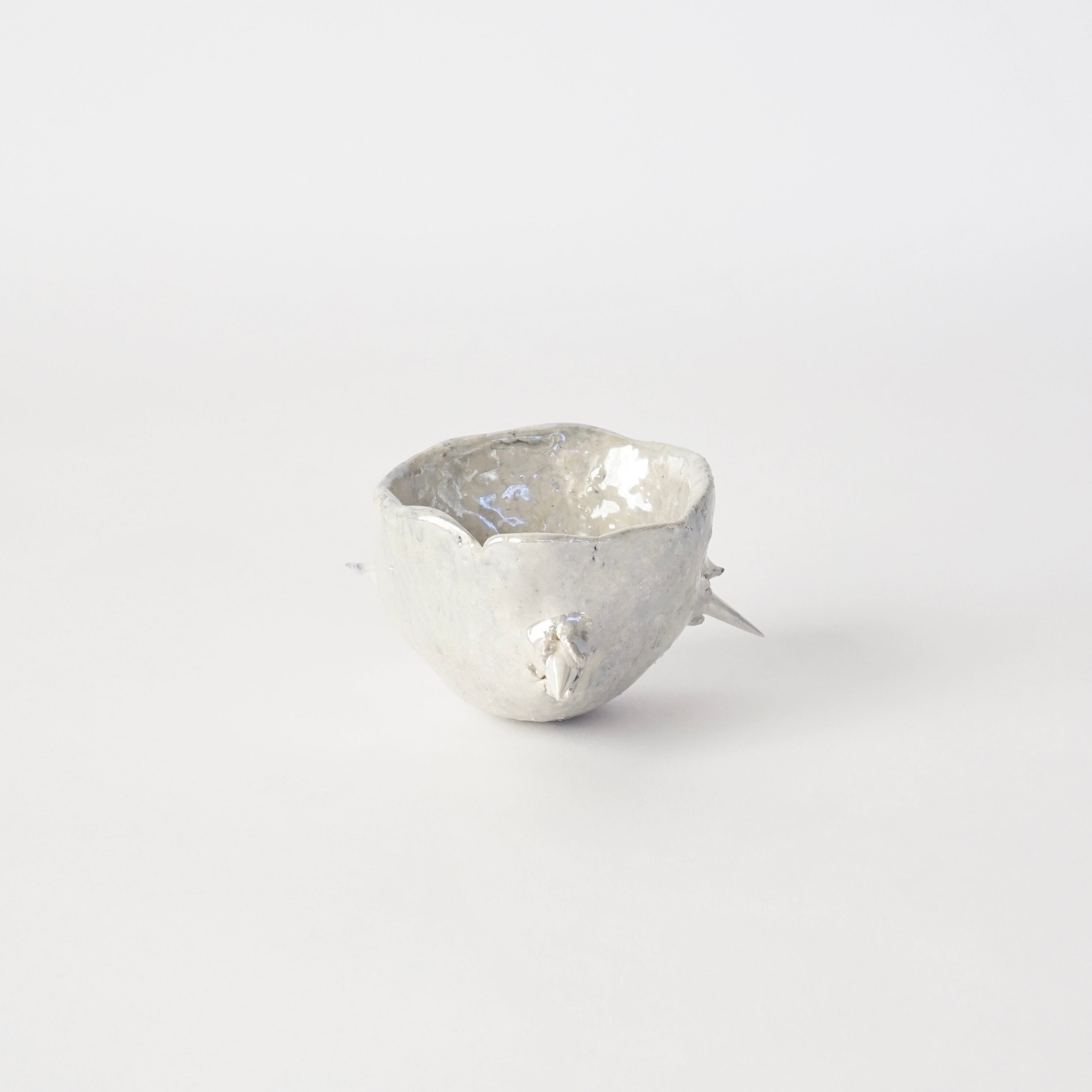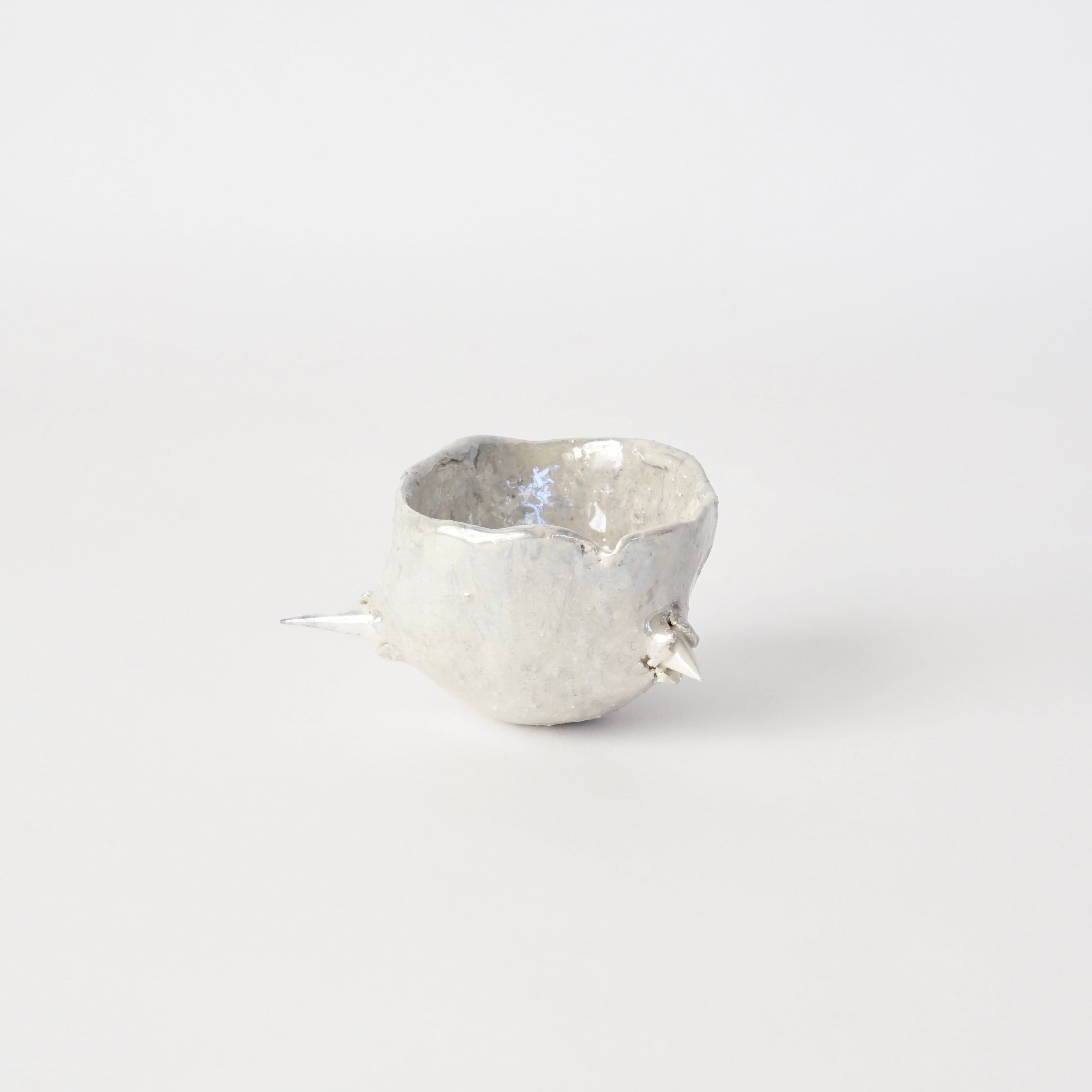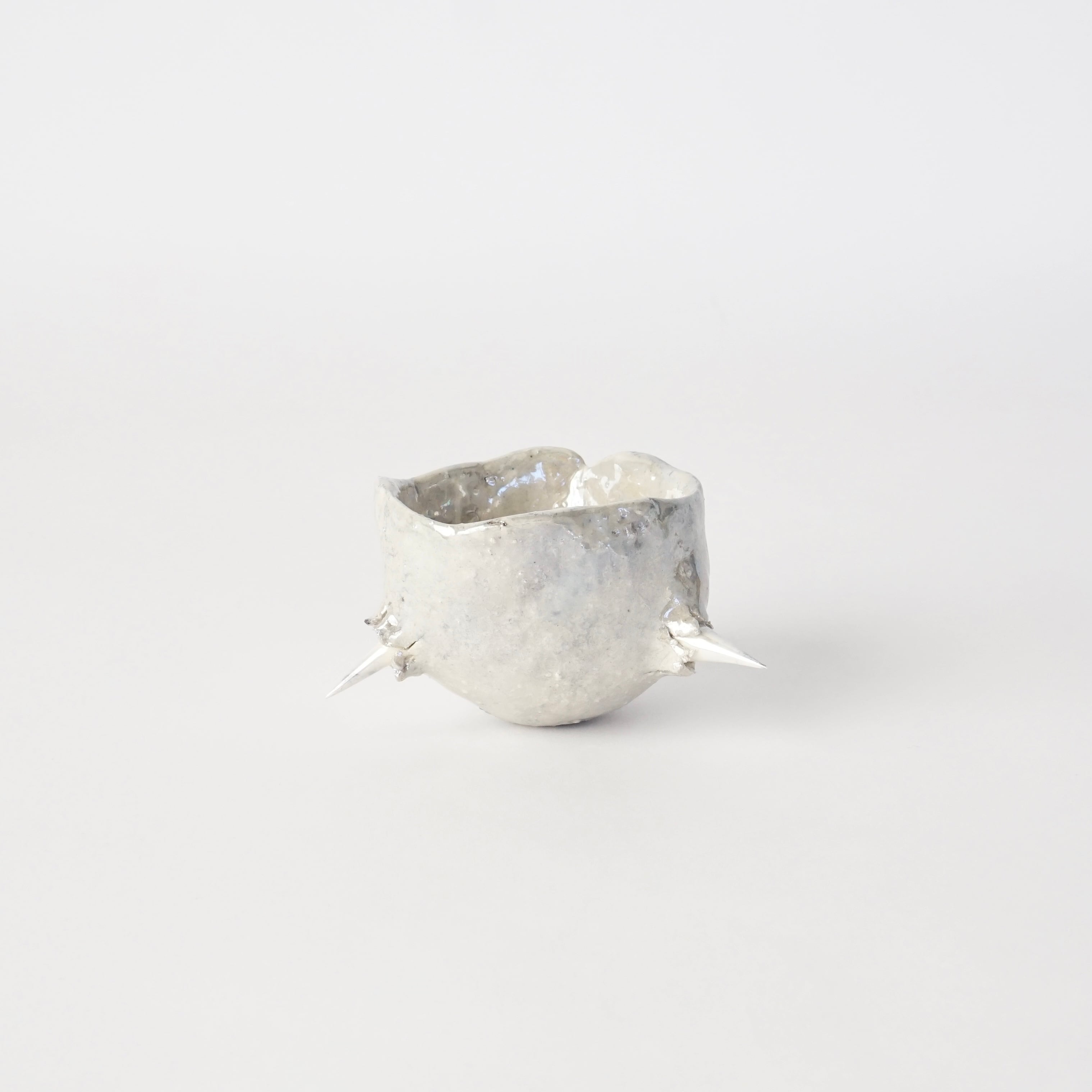 棘の生えた盃。シルバーに輝き、ずっしりと土の重みがあります。