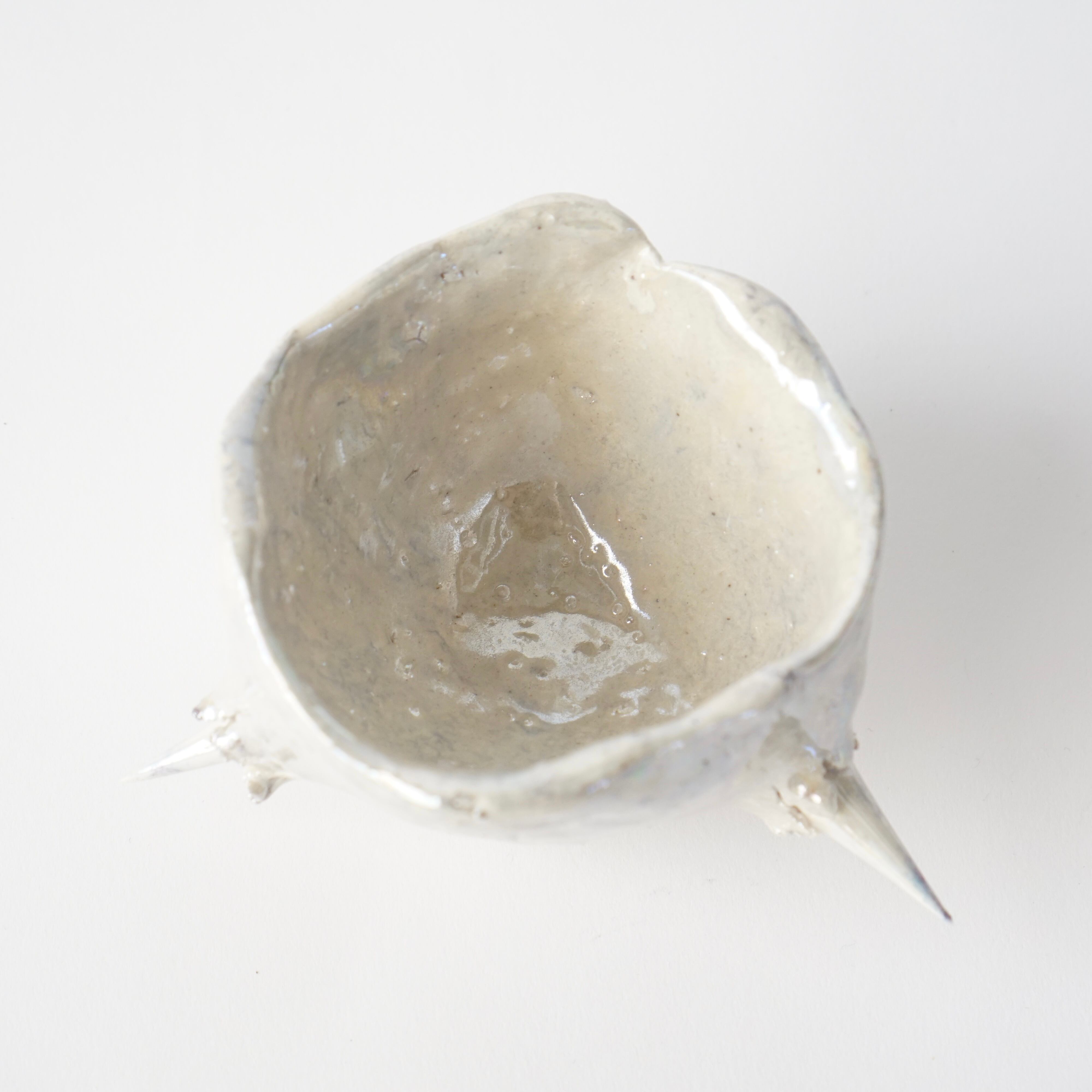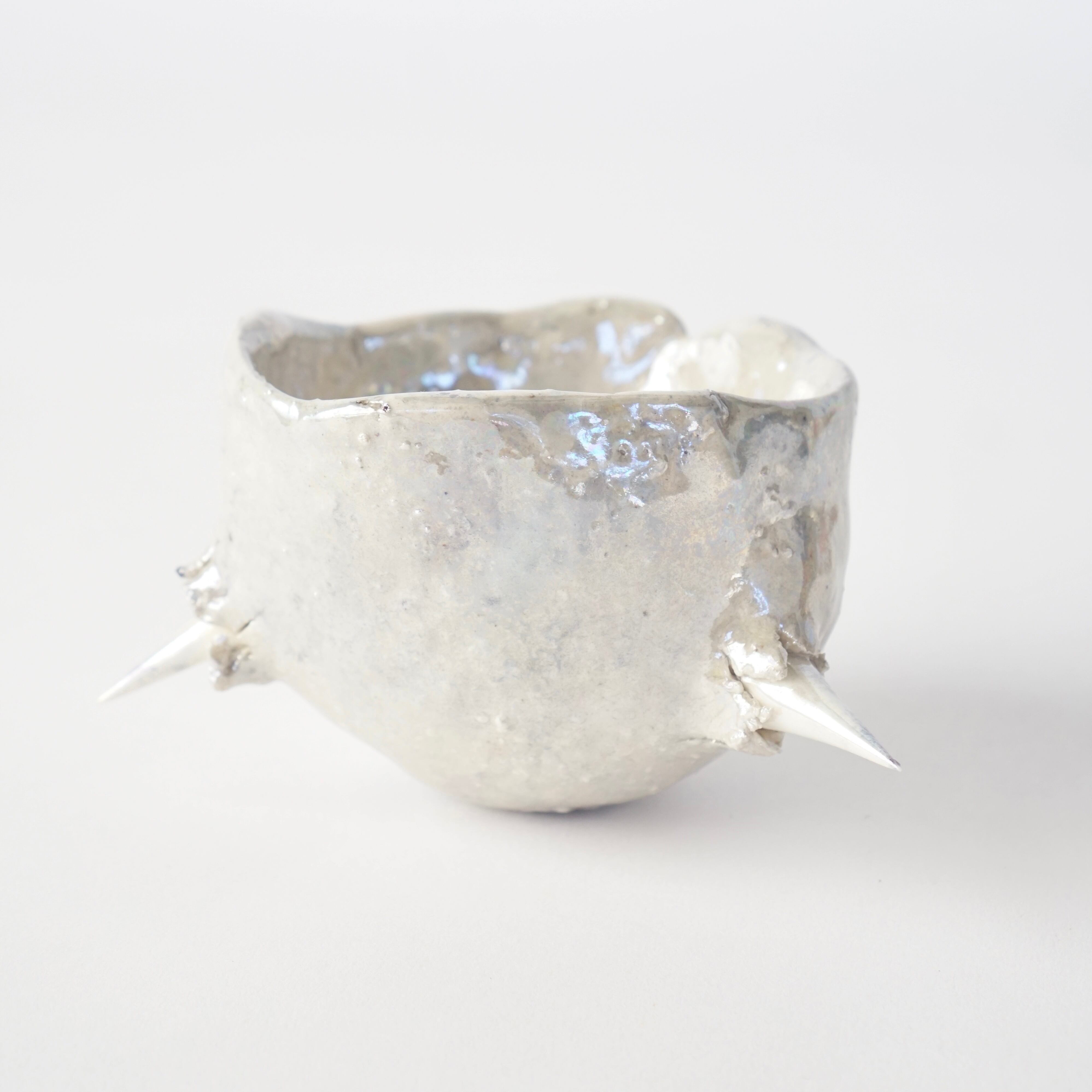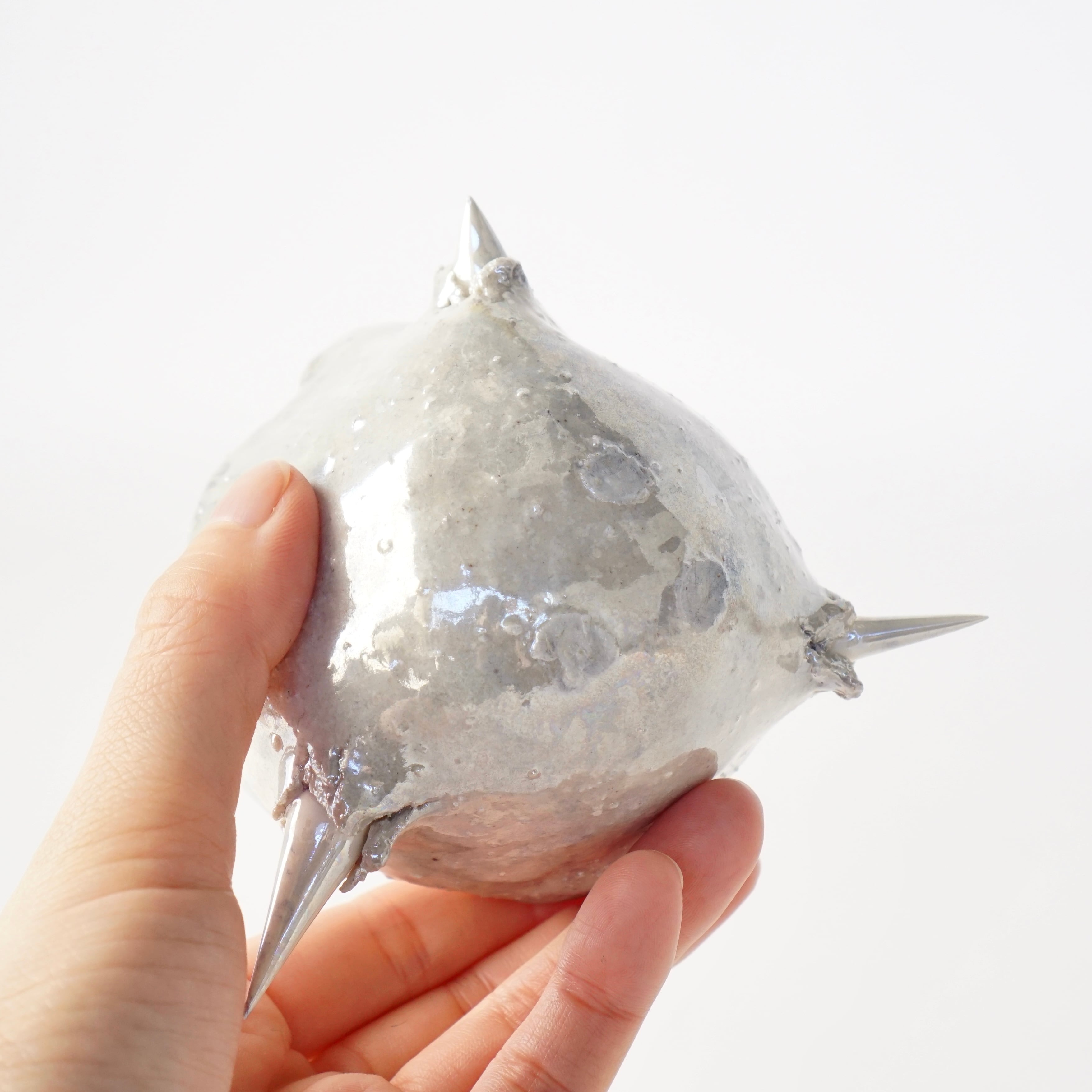 棘の生えた盃。シルバーに輝き、ずっしりと土の重みがあります。