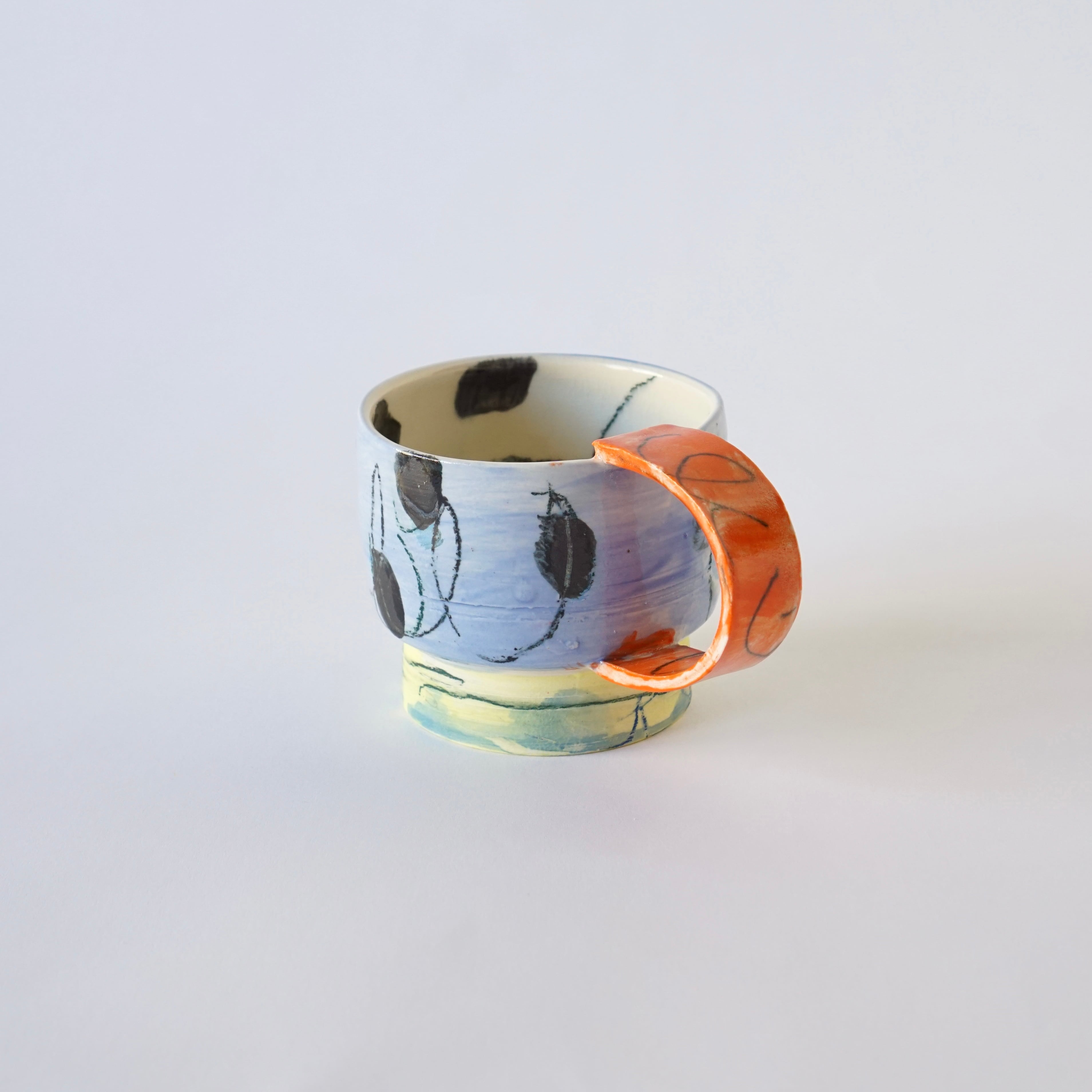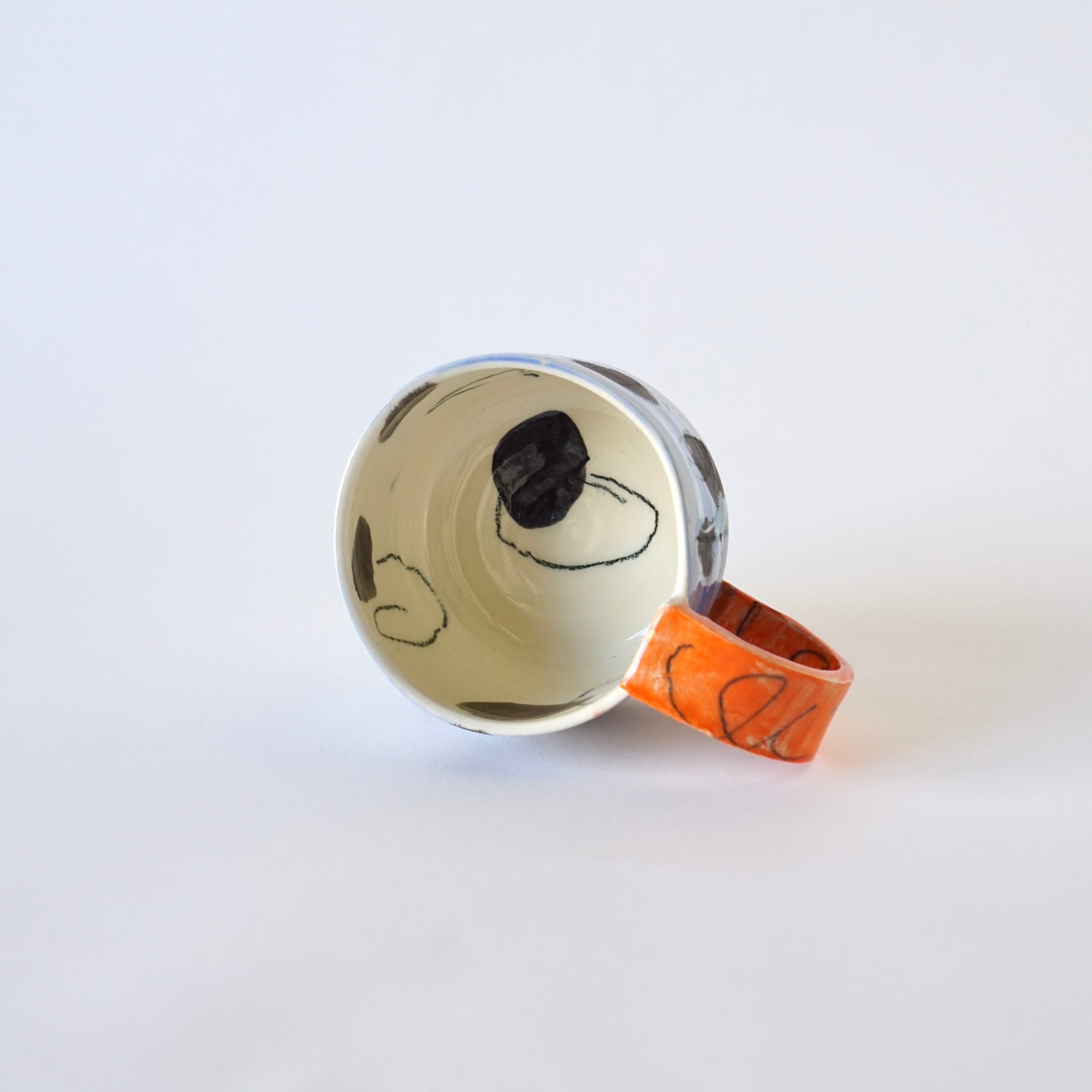 リズム感のある手描きのパターンが印象的なマグカップ。使うたびに愛着が湧きます。