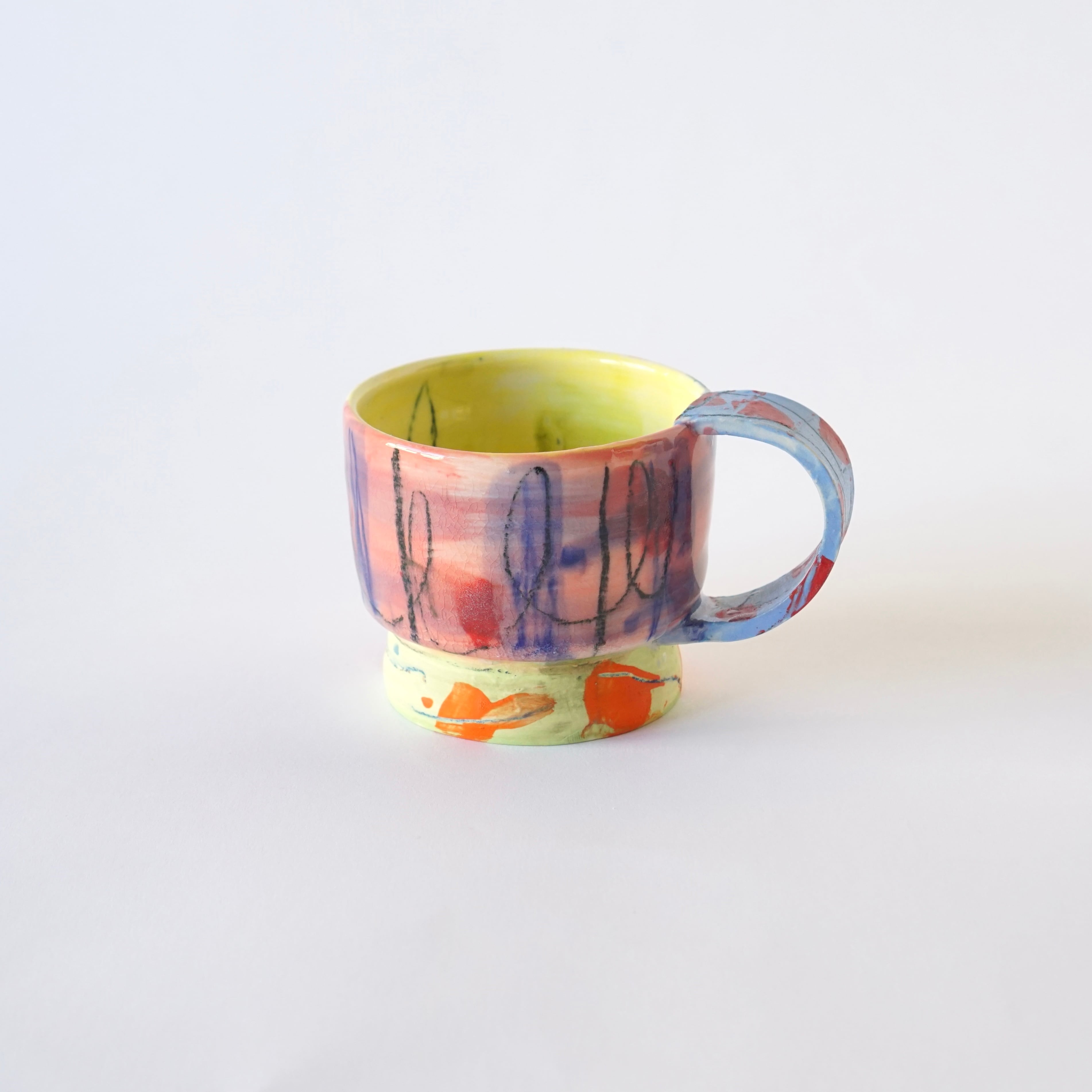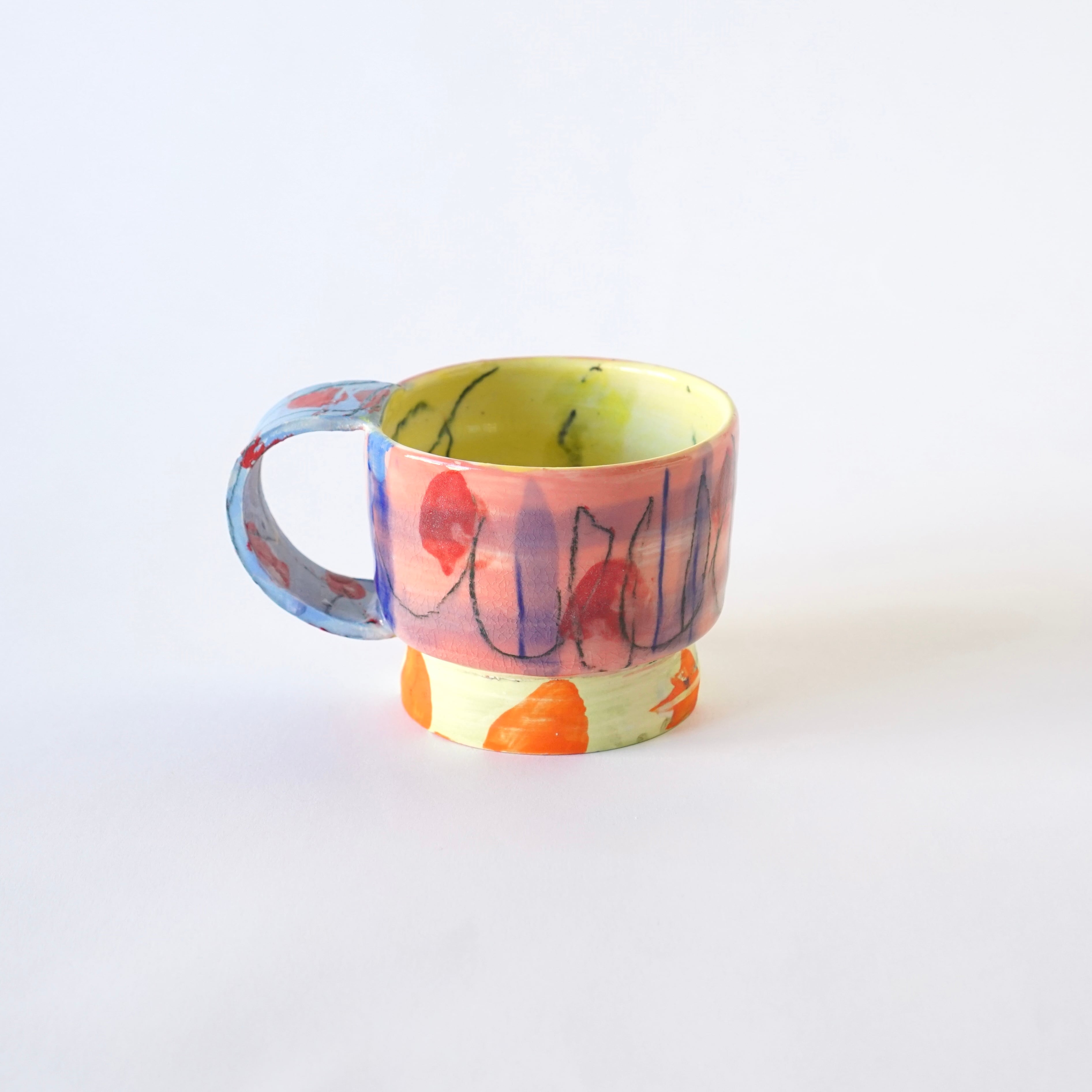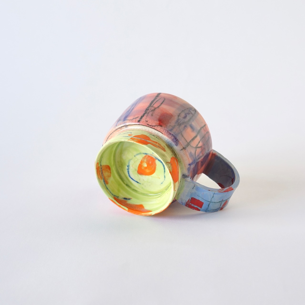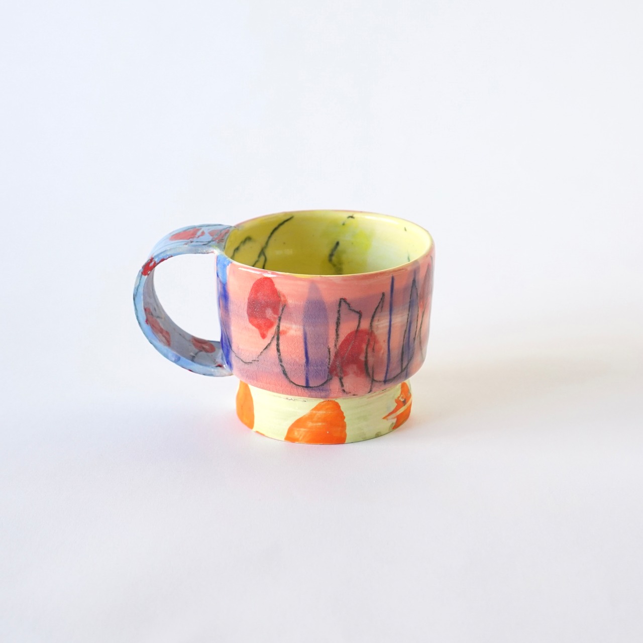 リズム感のある手描きのパターンが印象的なマグカップ。使うたびに愛着が湧きます。