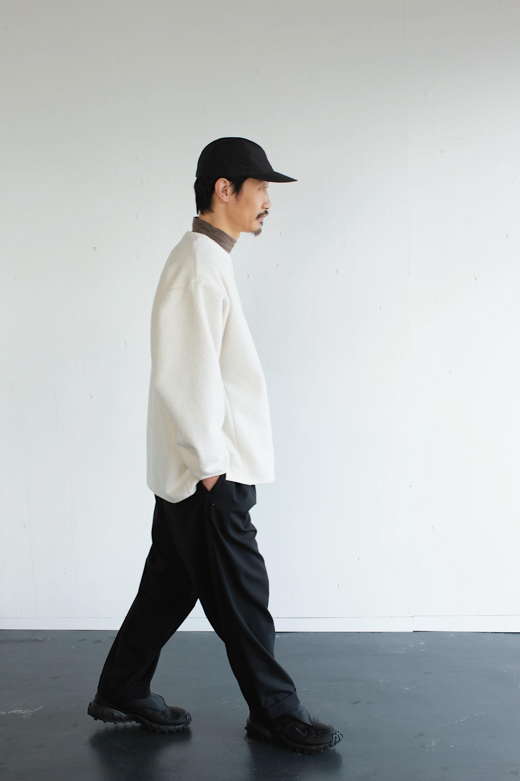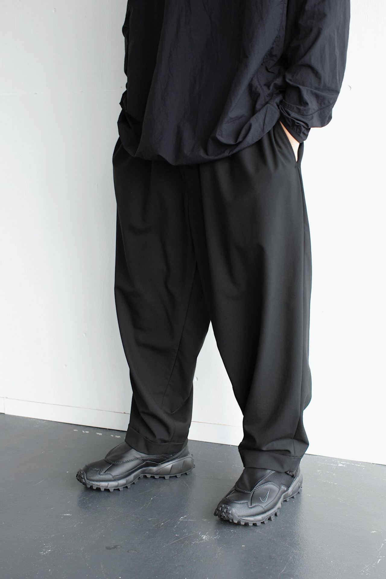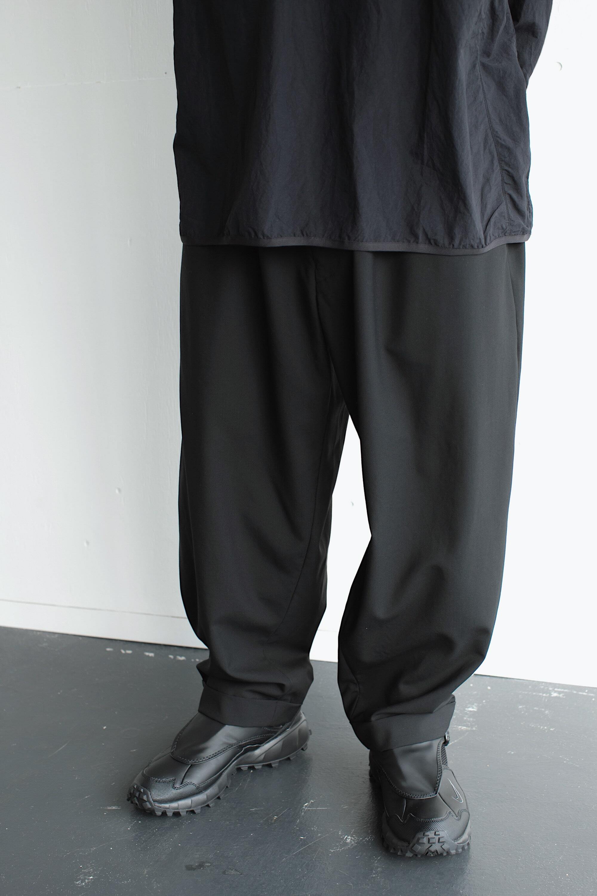 リラックス感のあるドレープ性と裾にかけてのテーパードが特徴的。