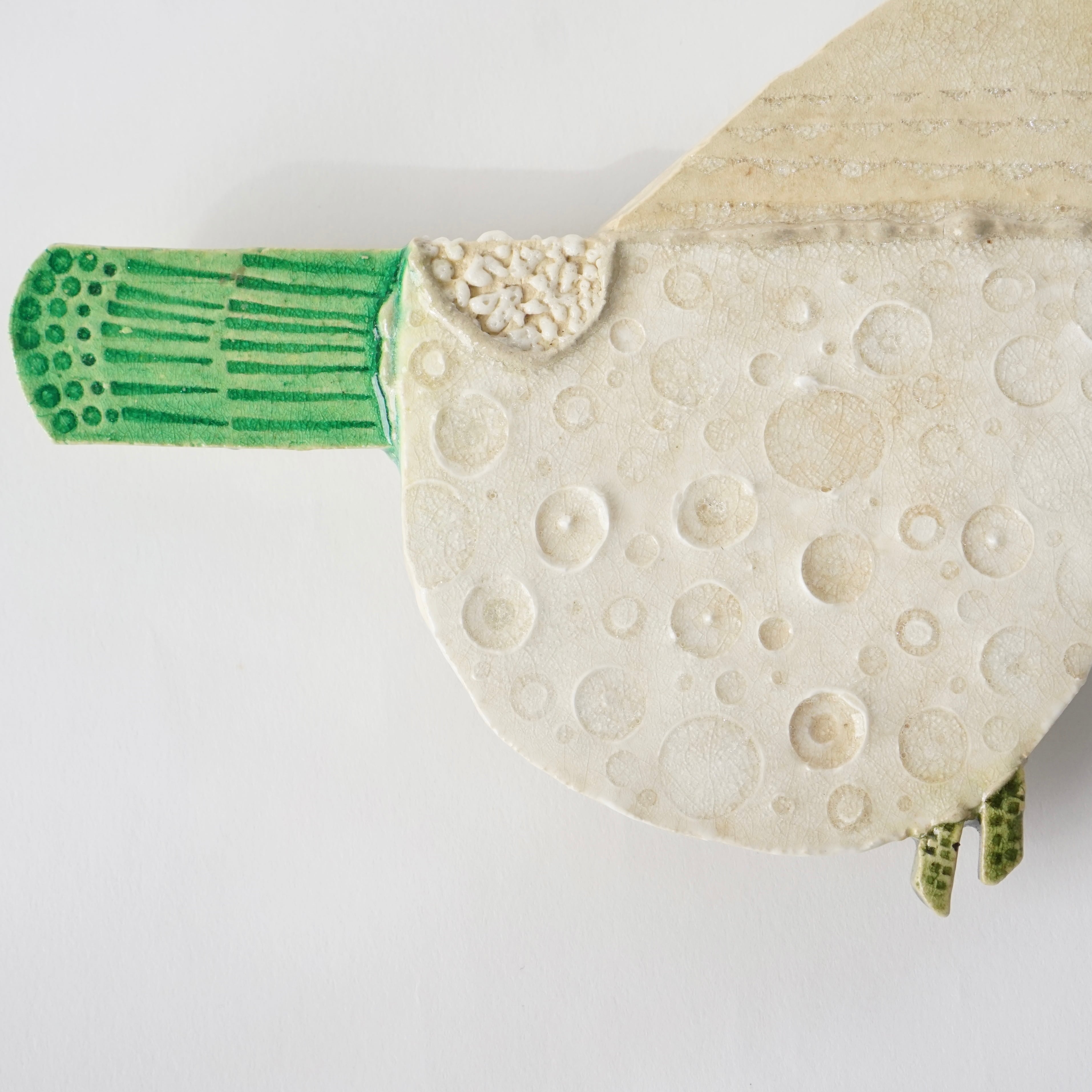 器を作る素材や技法から着想を得て生まれる鳥たちは、板状にした粘土のパーツの組み合わせから一羽ずつに形が与えられます。そこに模様や色彩、表情や質感が浮かび上がることで、唯一無二の個性が吹き込まれていきます。人の多様さにも重なる鳥たちは、世代や文化を超えてそれぞれの街に羽ばたいて来ました。
