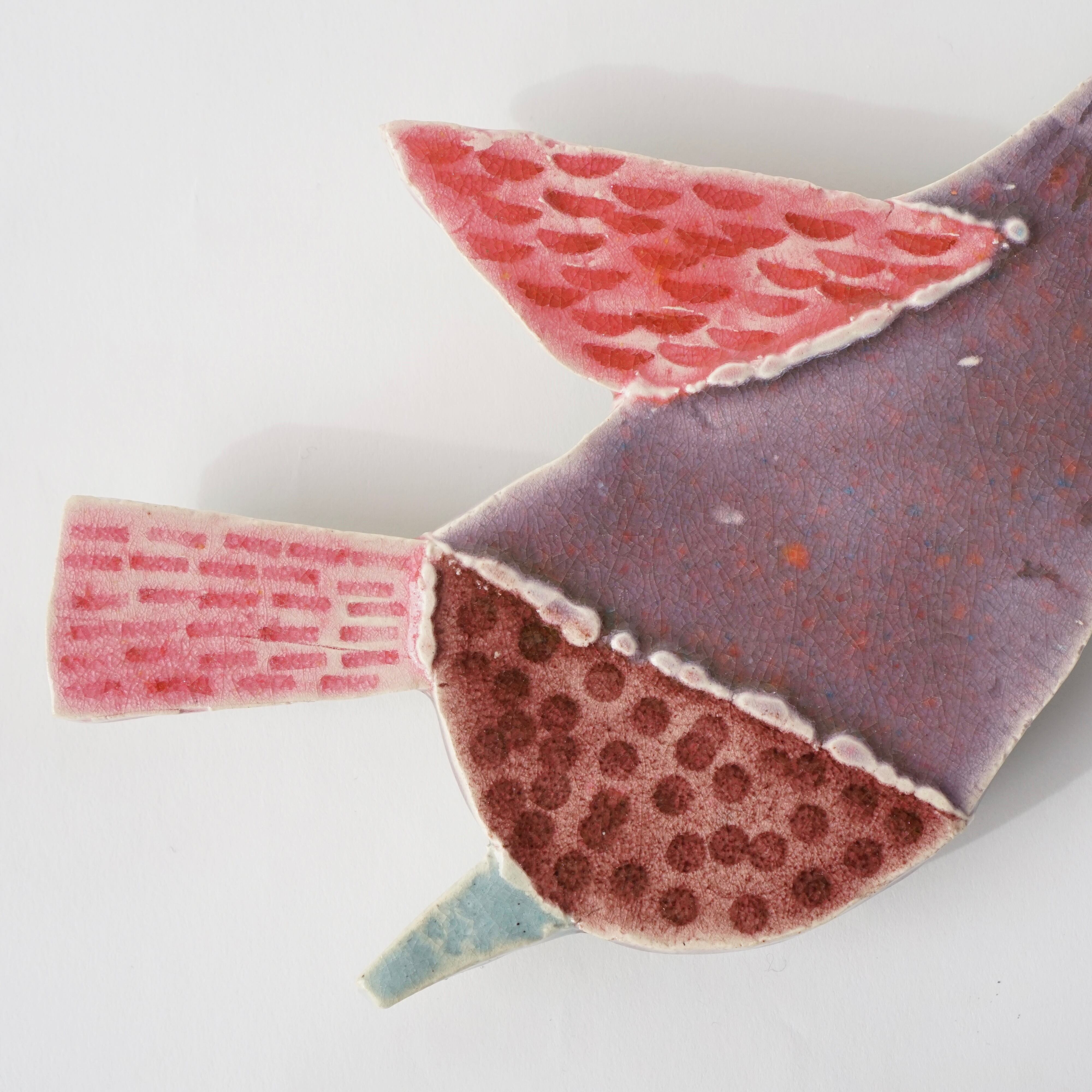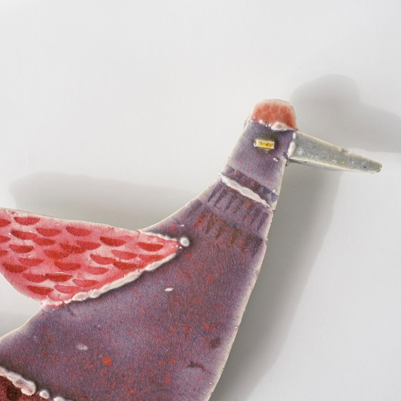 器を作る素材や技法から着想を得て生まれる鳥たちは、板状にした粘土のパーツの組み合わせから一羽ずつに形が与えられます。そこに模様や色彩、表情や質感が浮かび上がることで、唯一無二の個性が吹き込まれていきます。人の多様さにも重なる鳥たちは、世代や文化を超えてそれぞれの街に羽ばたいて来ました。