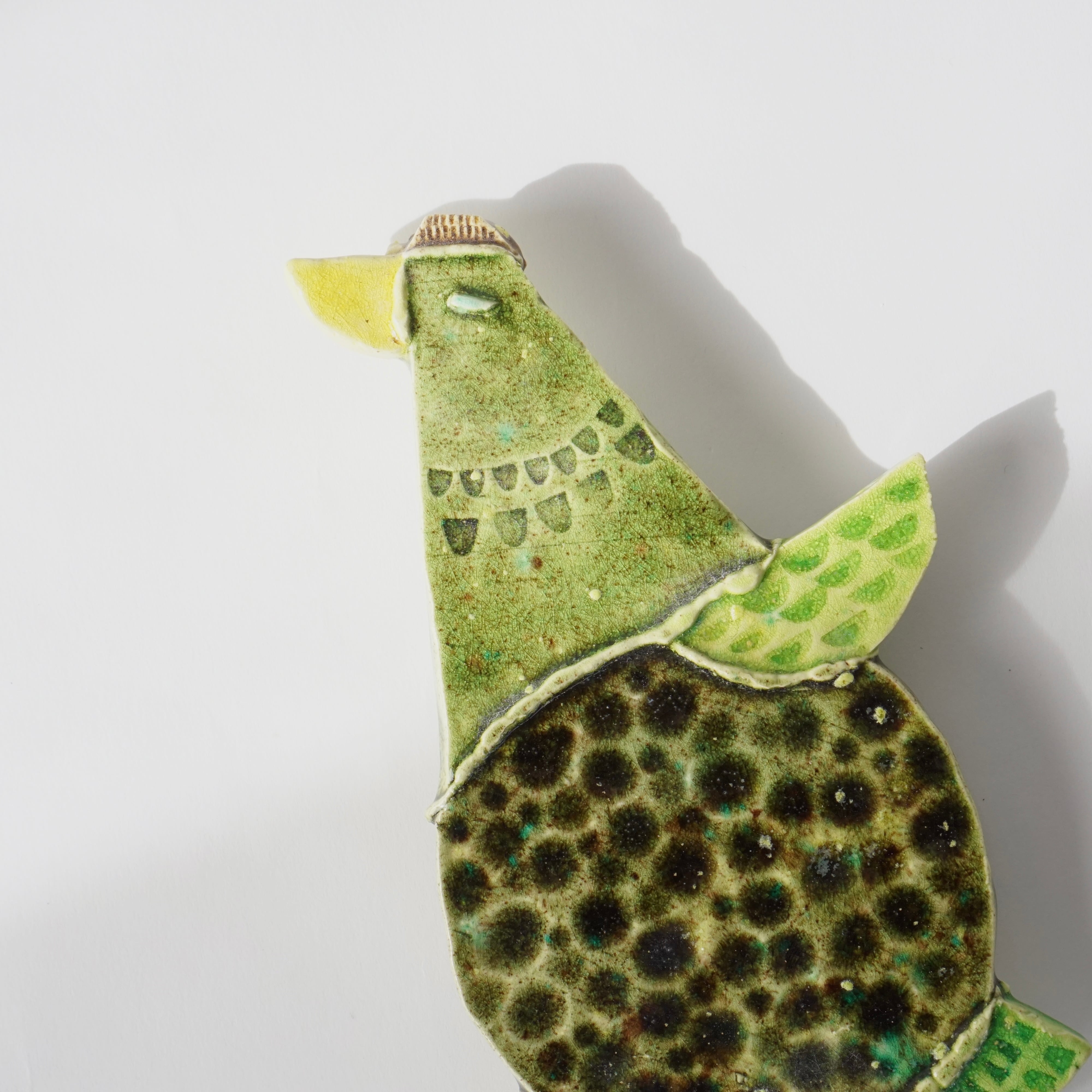 器を作る素材や技法から着想を得て生まれる鳥たちは、板状にした粘土のパーツの組み合わせから一羽ずつに形が与えられます。そこに模様や色彩、表情や質感が浮かび上がることで、唯一無二の個性が吹き込まれていきます。人の多様さにも重なる鳥たちは、世代や文化を超えてそれぞれの街に羽ばたいて来ました。
