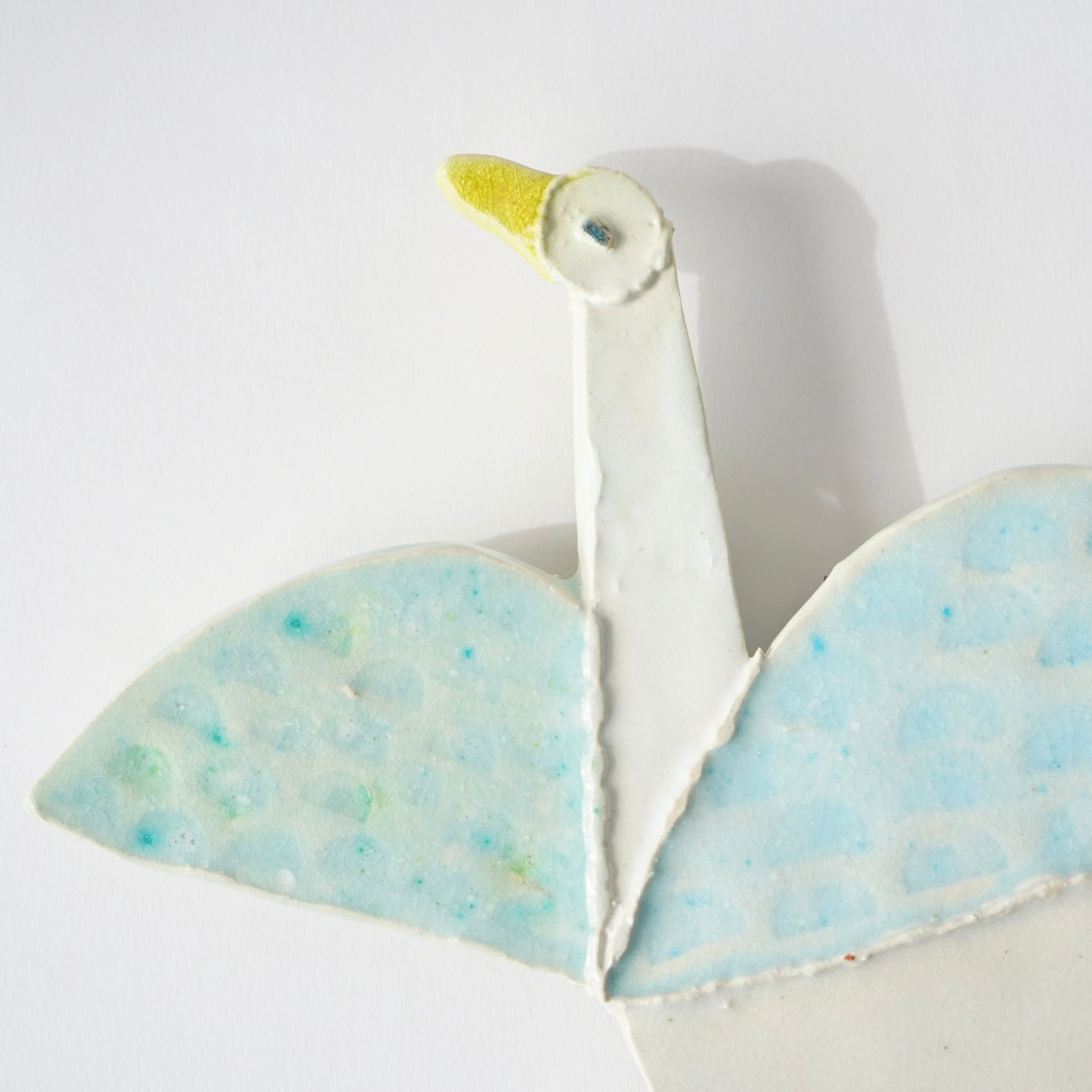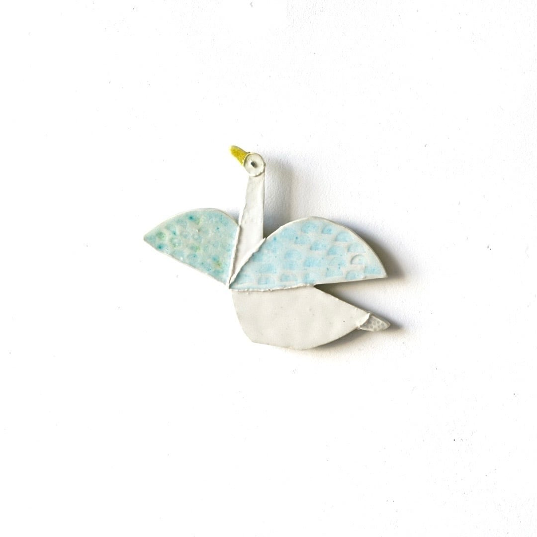 器を作る素材や技法から着想を得て生まれる鳥たちは、板状にした粘土のパーツの組み合わせから一羽ずつに形が与えられます。そこに模様や色彩、表情や質感が浮かび上がることで、唯一無二の個性が吹き込まれていきます。人の多様さにも重なる鳥たちは、世代や文化を超えてそれぞれの街に羽ばたいて来ました。