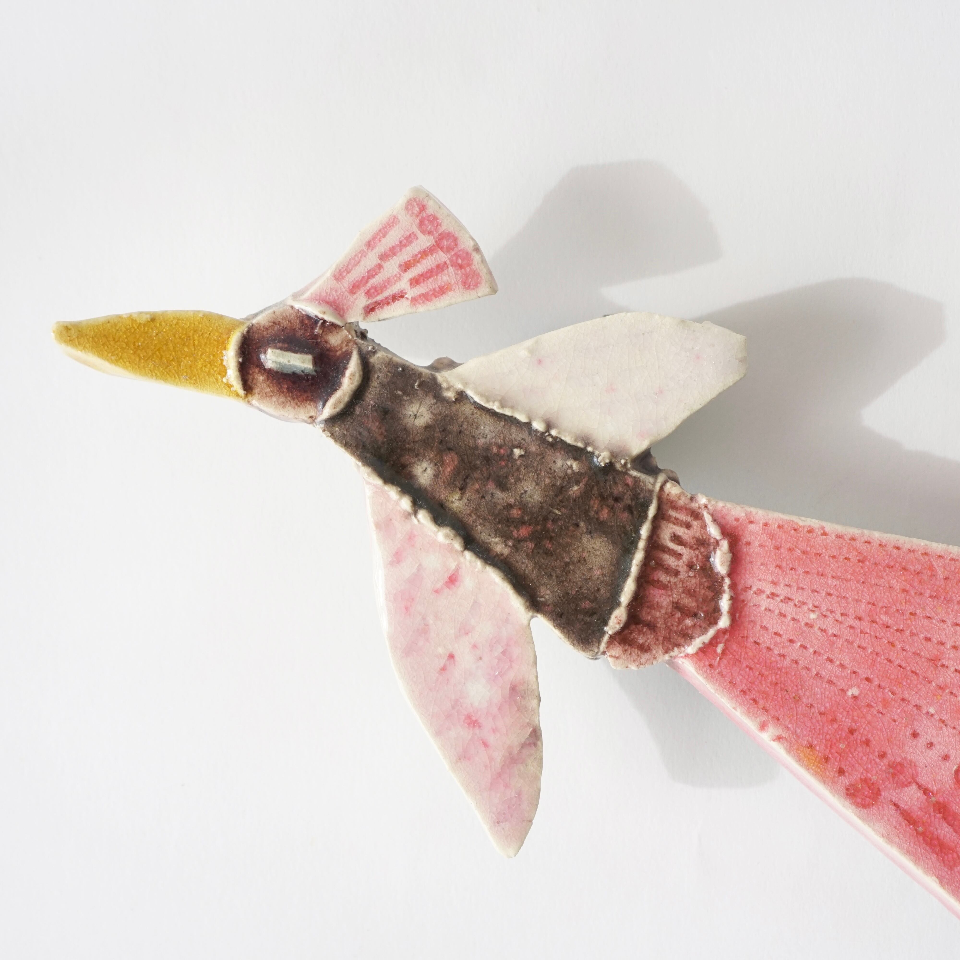 器を作る素材や技法から着想を得て生まれる鳥たちは、板状にした粘土のパーツの組み合わせから一羽ずつに形が与えられます。そこに模様や色彩、表情や質感が浮かび上がることで、唯一無二の個性が吹き込まれていきます。人の多様さにも重なる鳥たちは、世代や文化を超えてそれぞれの街に羽ばたいて来ました。