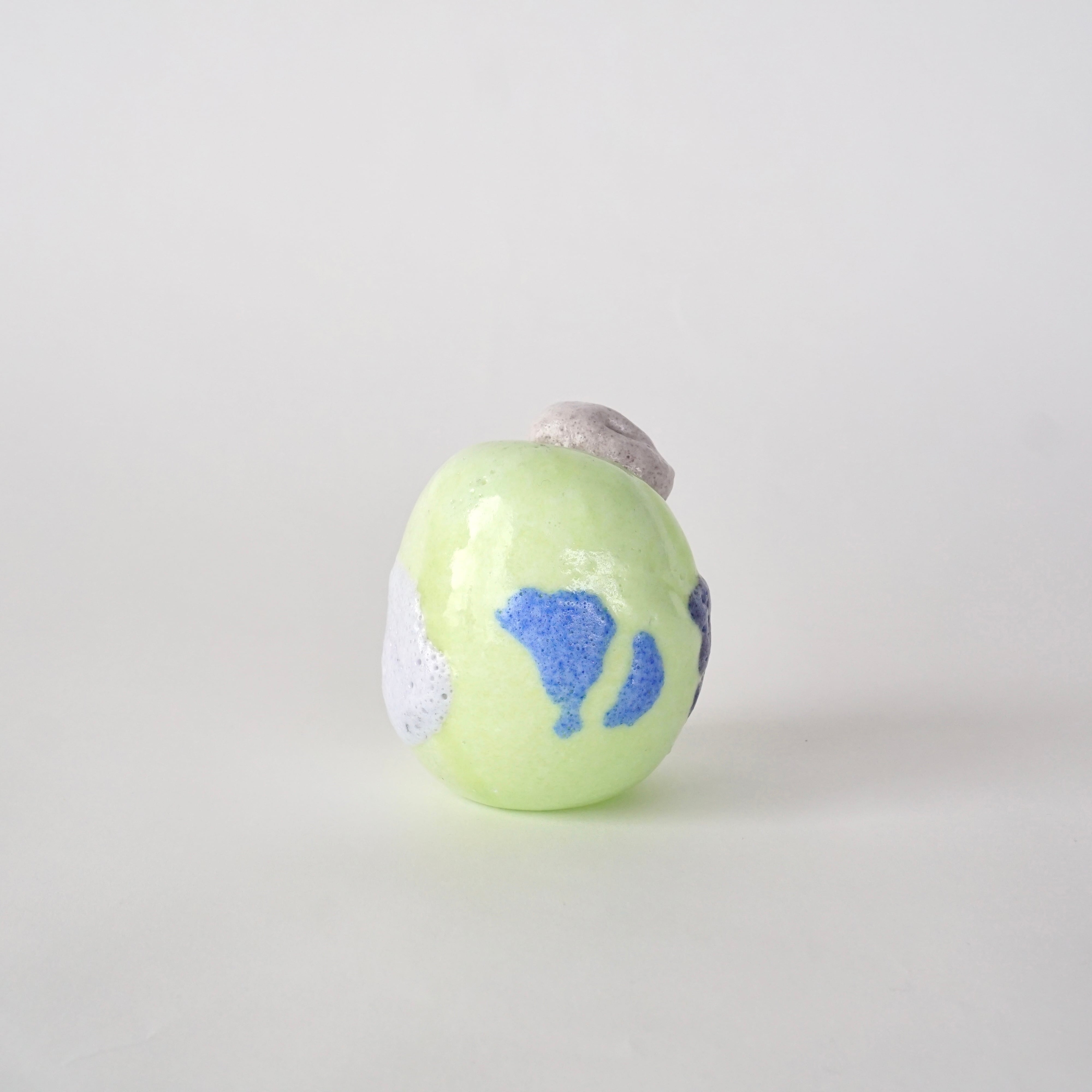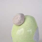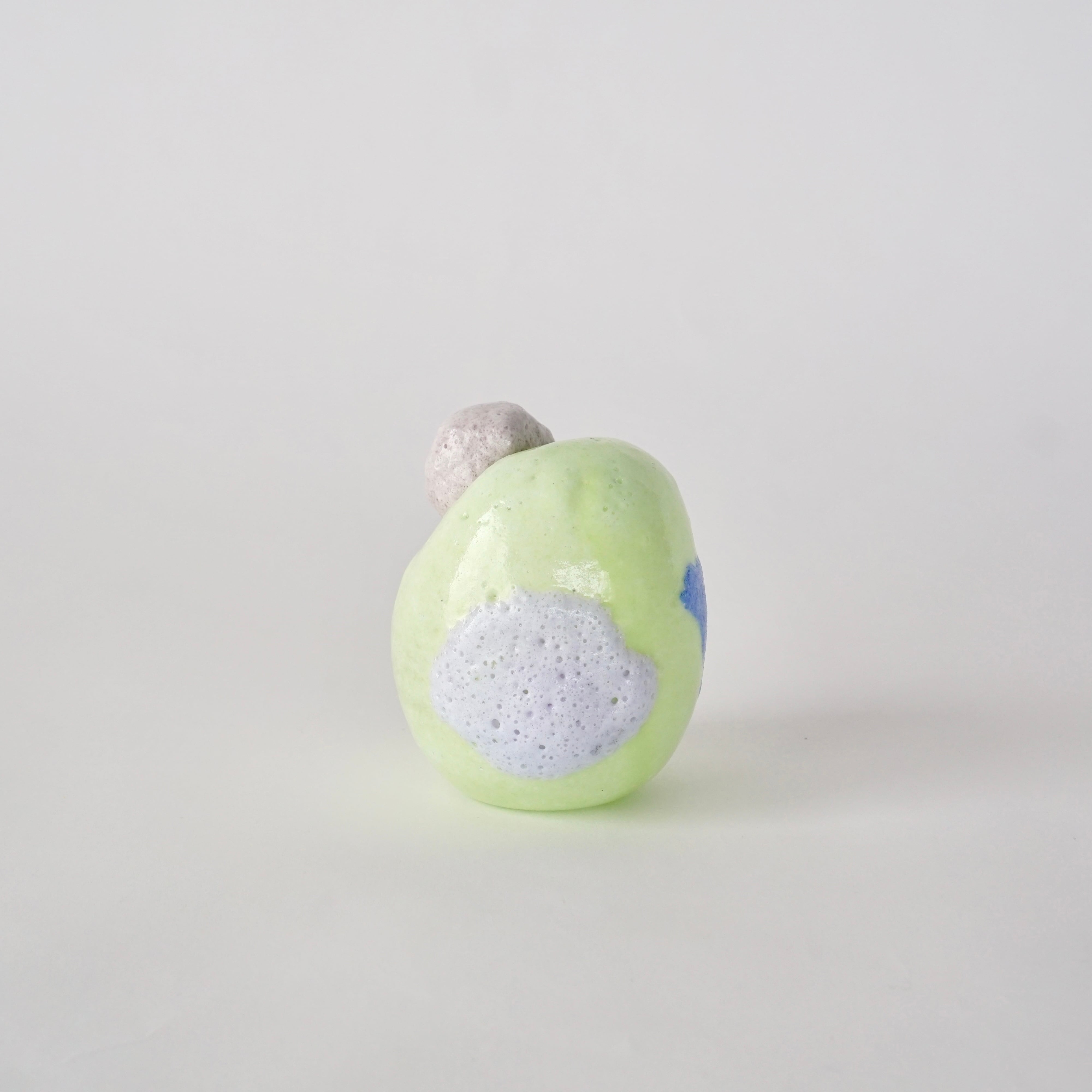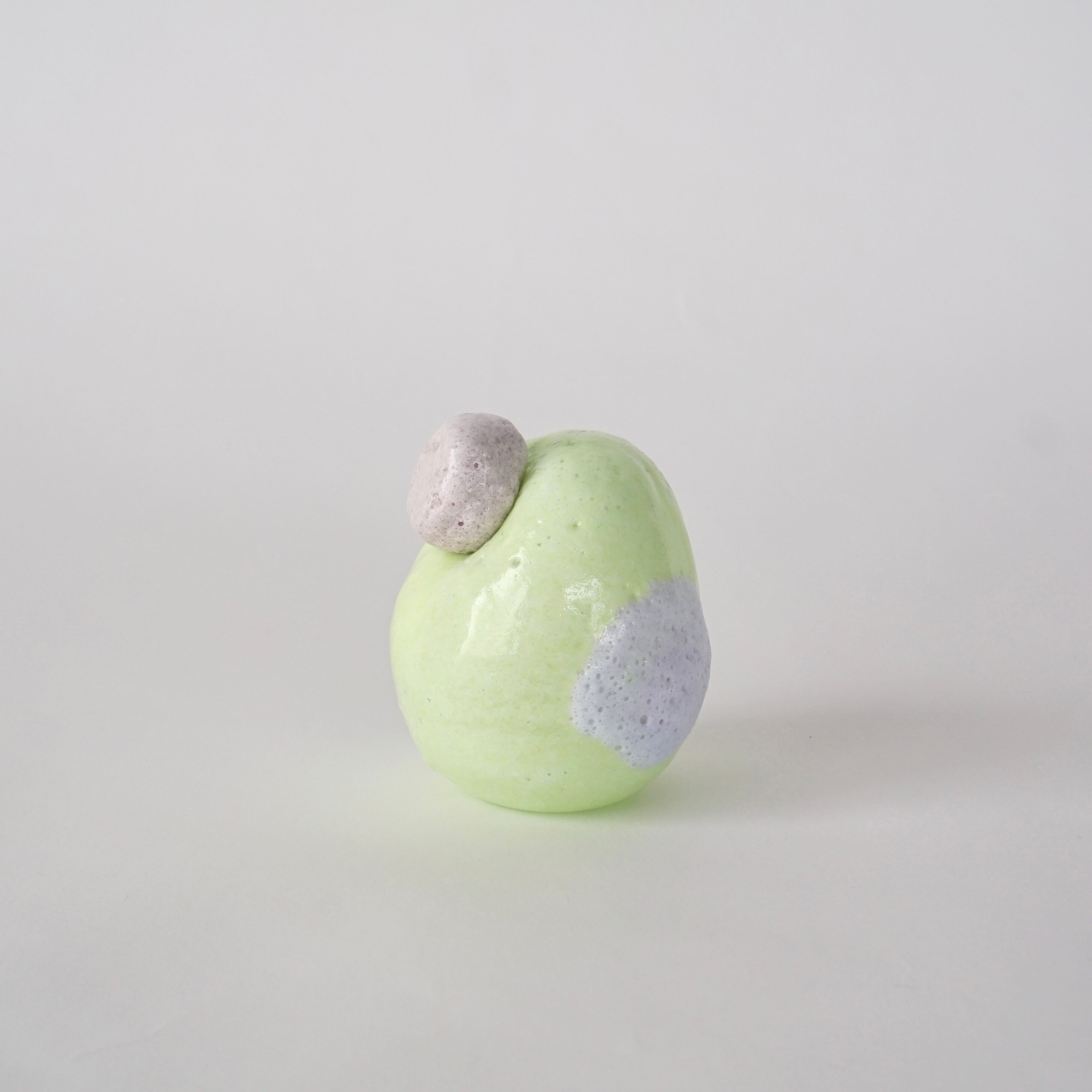 淡いグリーンとパープルがやわらかい印象のガラスのオブジェ。