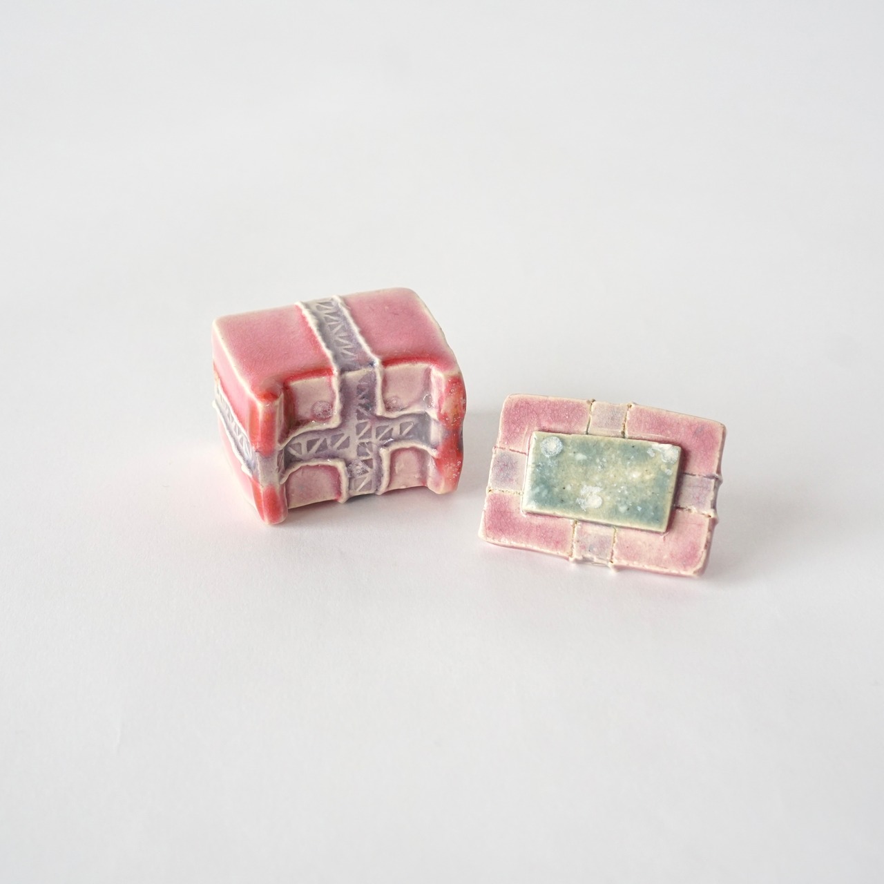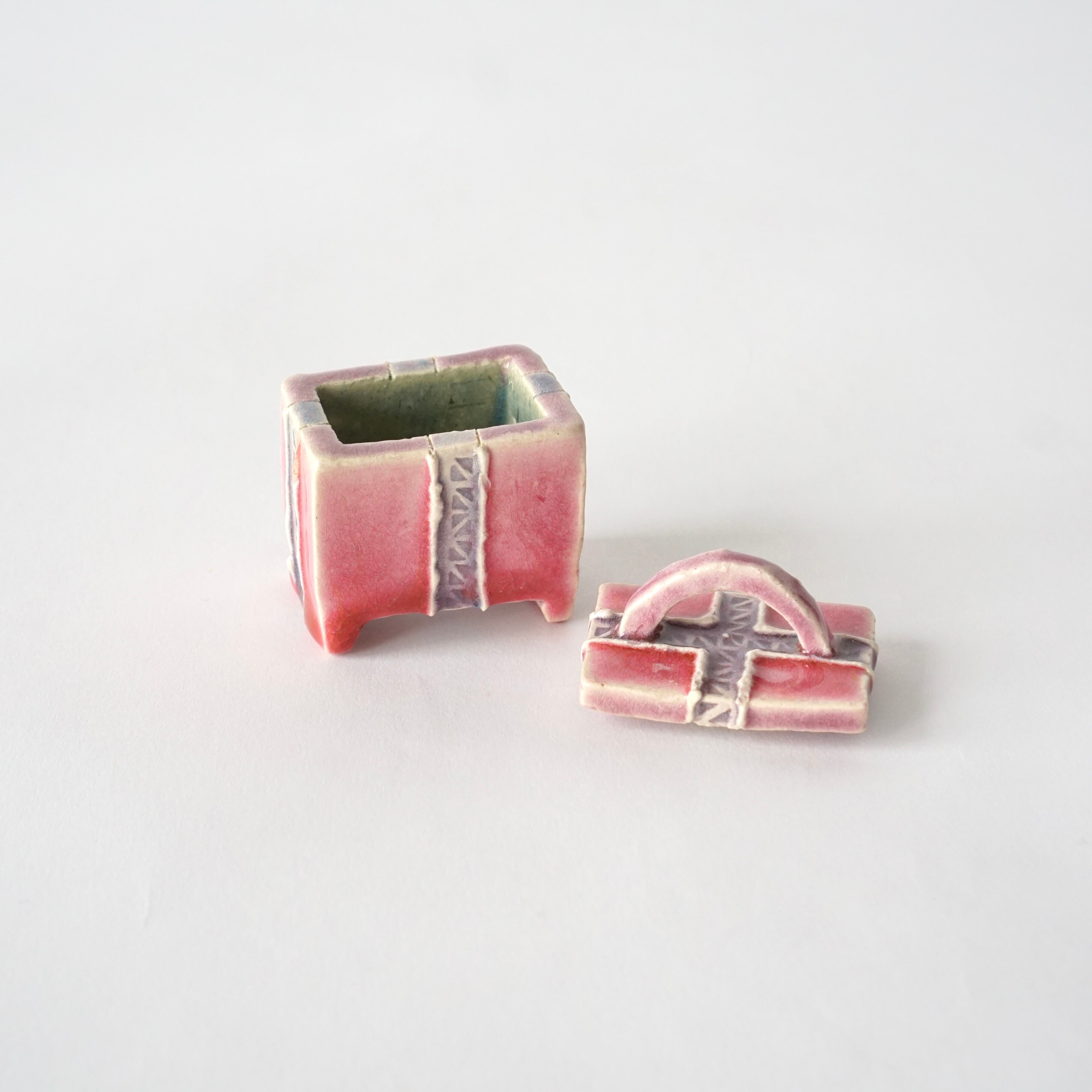 カラフルで艶のある釉薬が愛らしい一点ものの小箱。