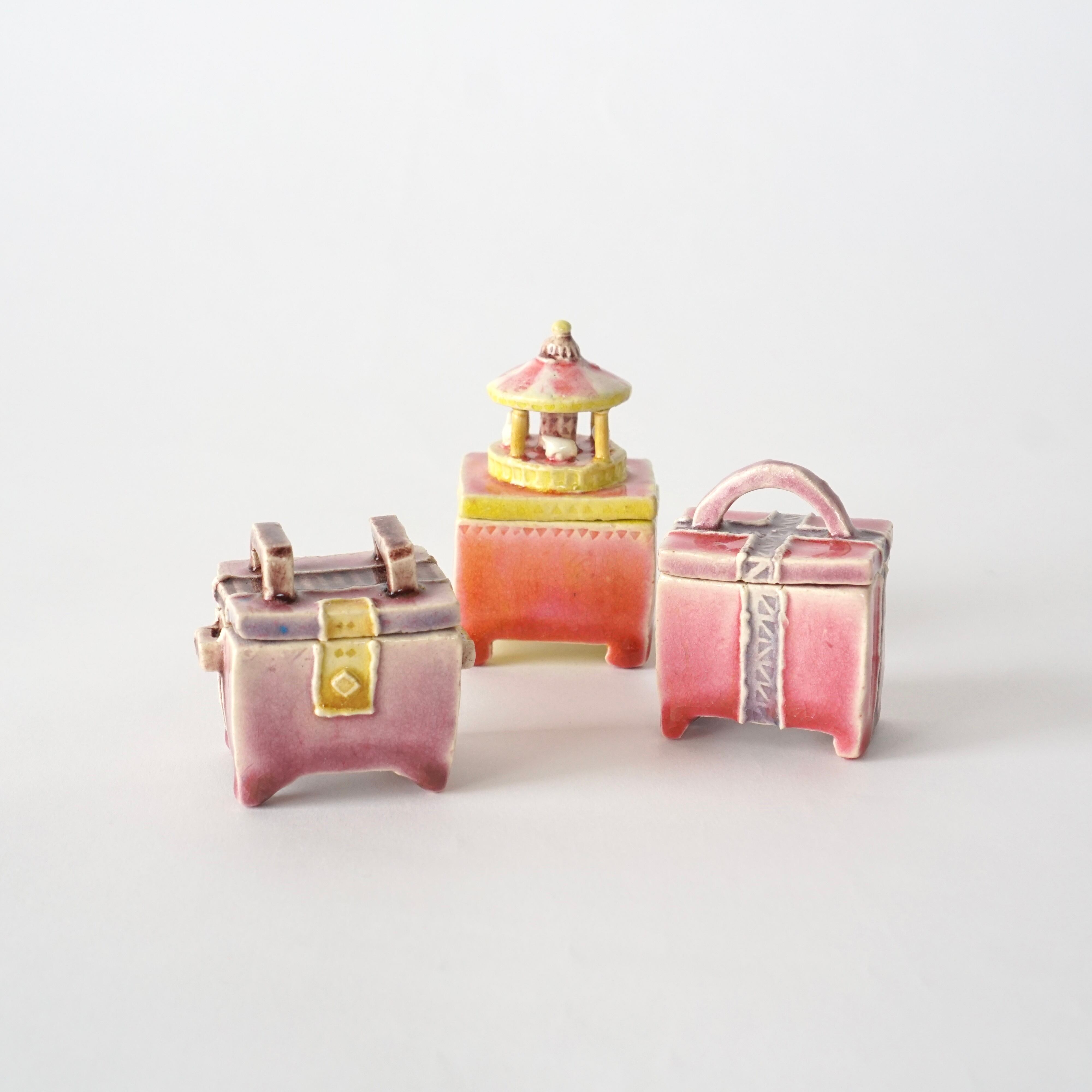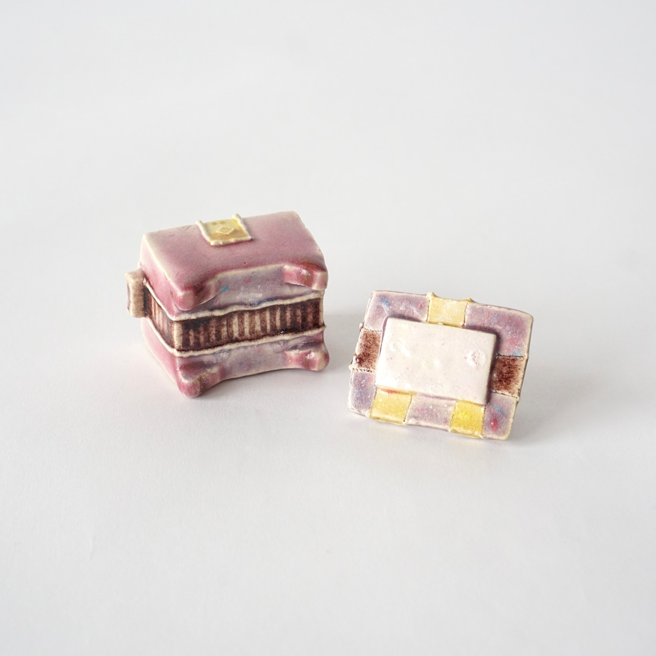 カラフルで艶のある釉薬が愛らしい一点ものの小箱。
