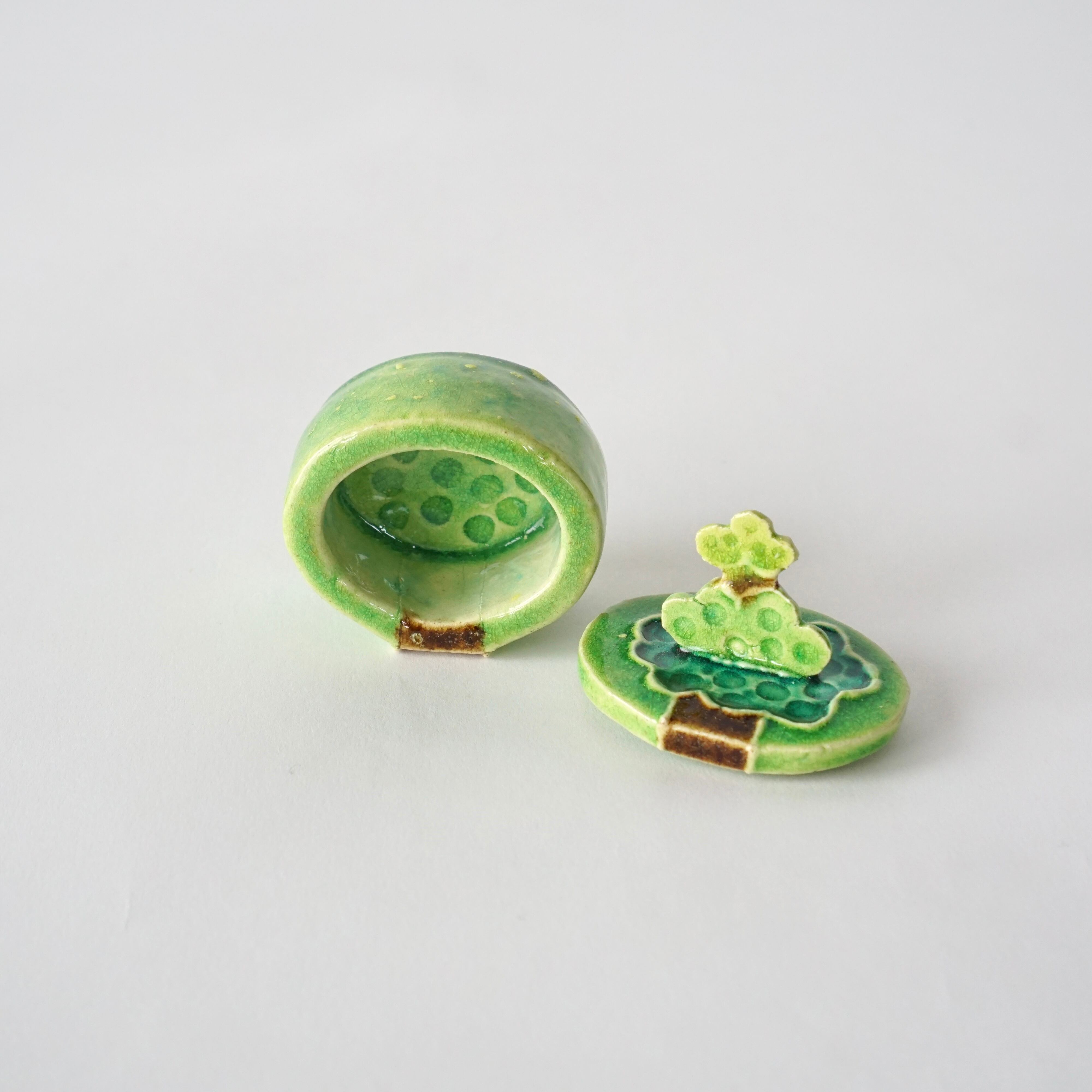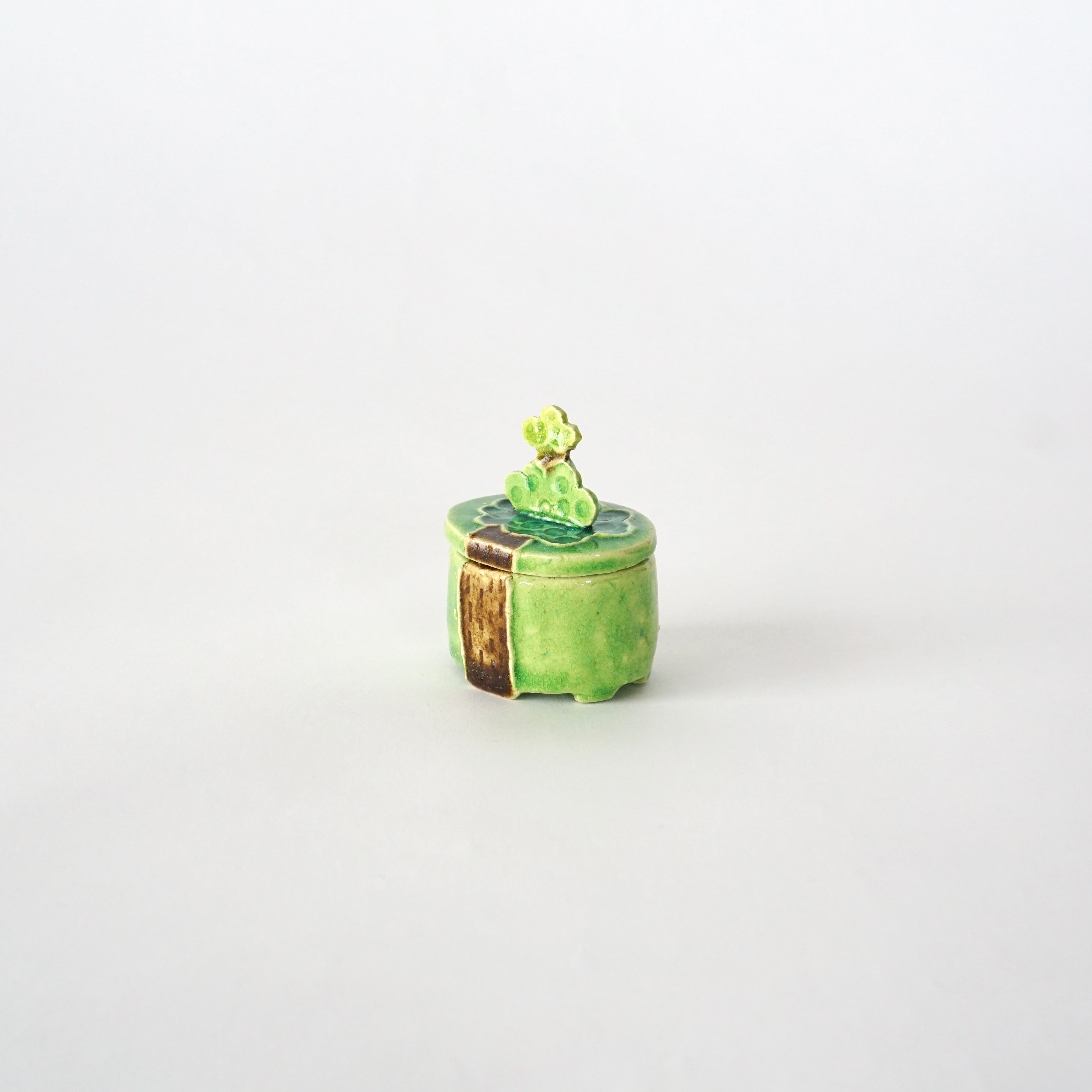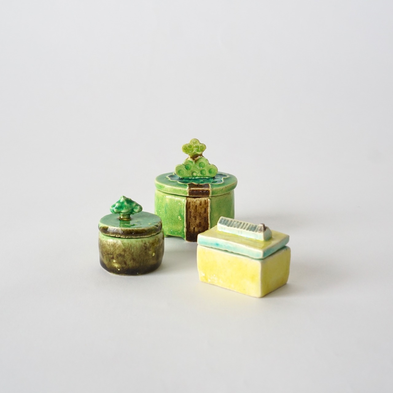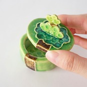 カラフルで艶のある釉薬が愛らしい一点ものの小箱。
