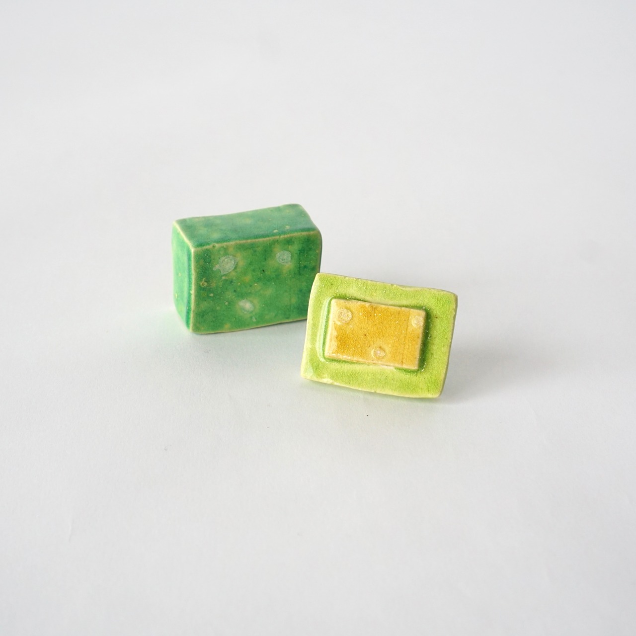 カラフルで艶のある釉薬が愛らしい一点ものの小箱。