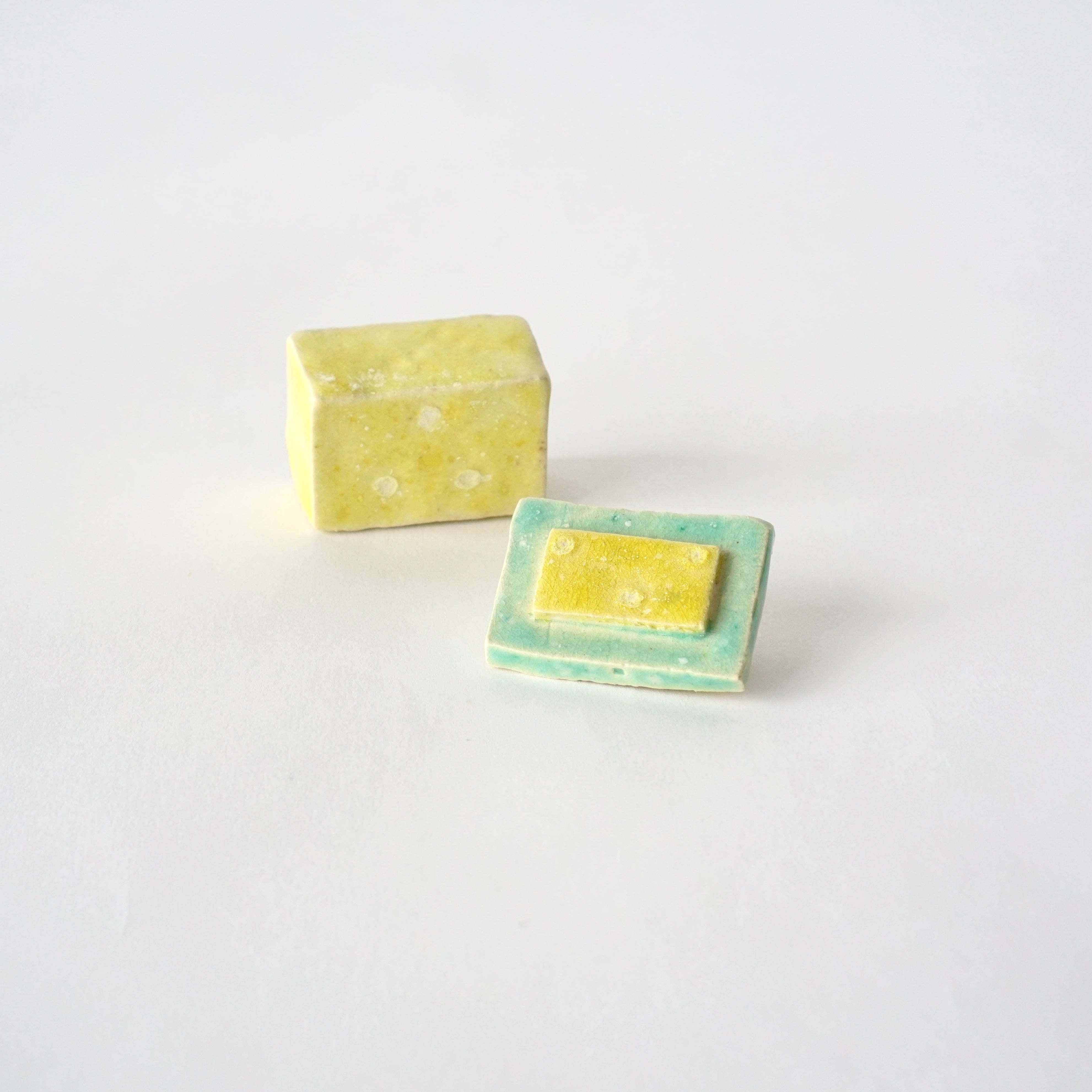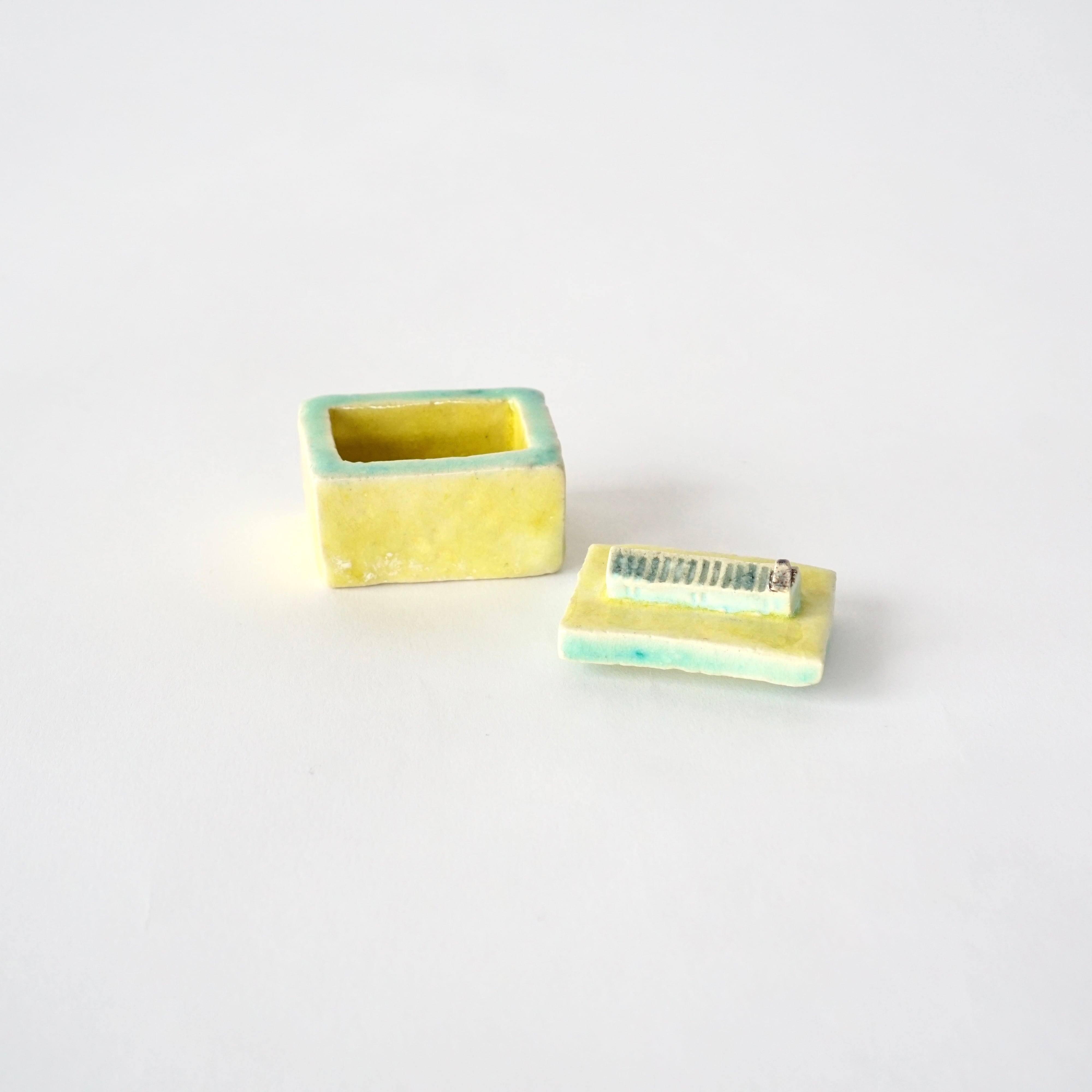 カラフルで艶のある釉薬が愛らしい一点ものの小箱。