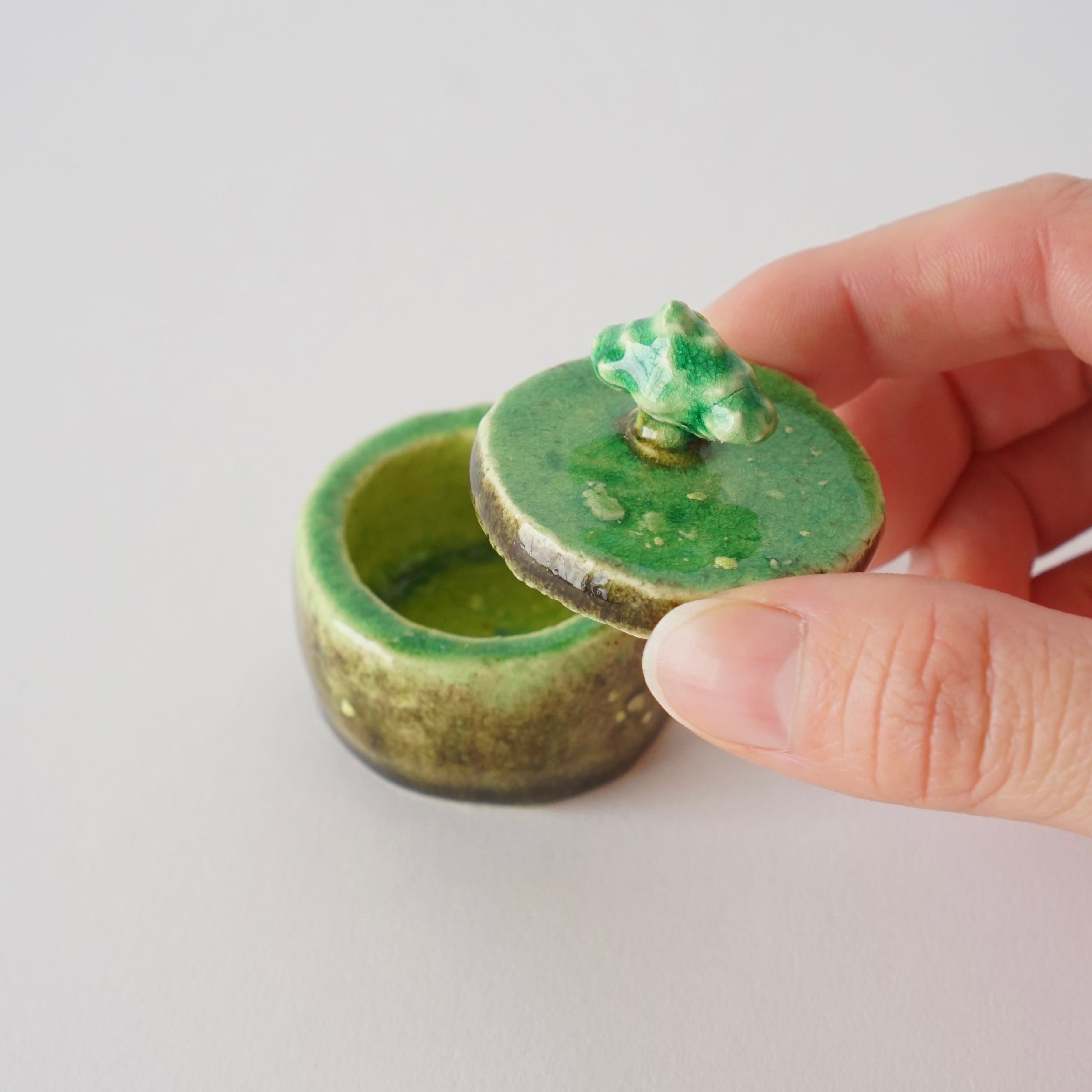 カラフルで艶のある釉薬が愛らしい一点ものの小箱。