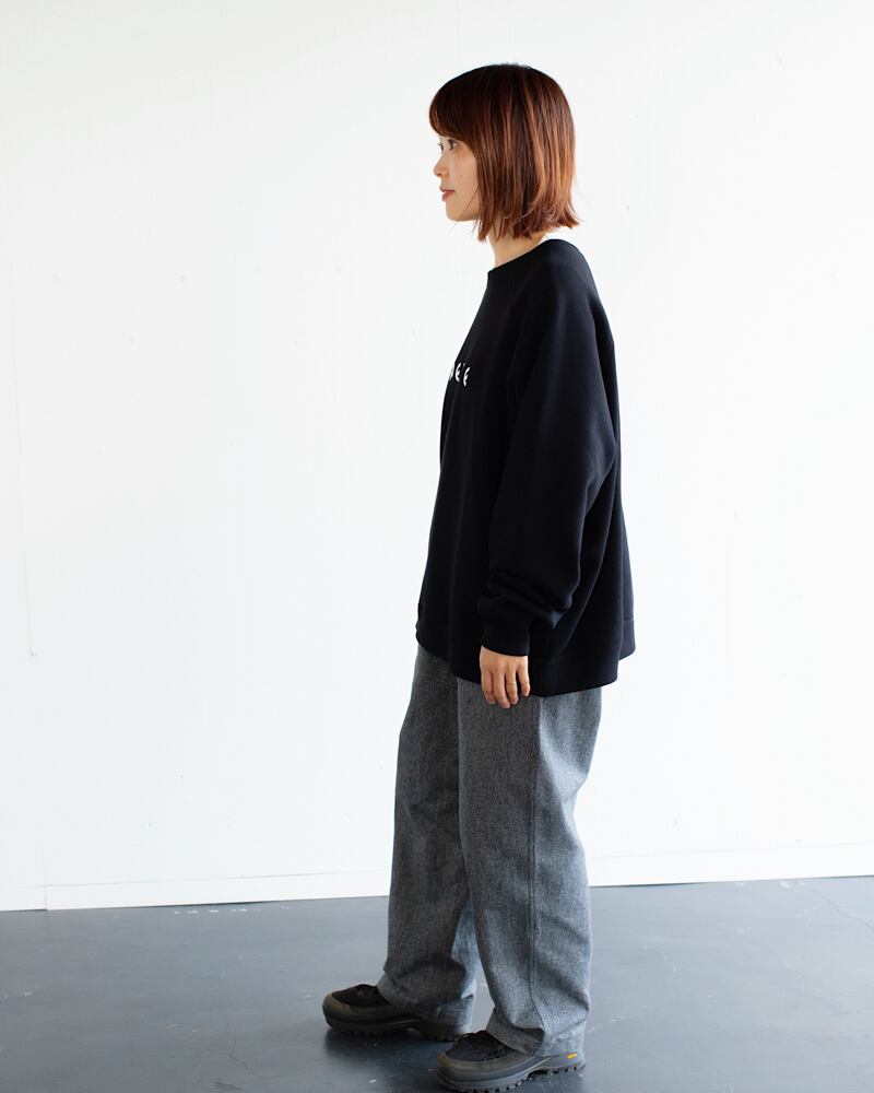 腰から滑らかに落ちるシルエットが特徴で、両脇を環縫い(ダブルステッチ)で仕上げているため、立体感のあるデザインと耐久性を兼ね備えています。
