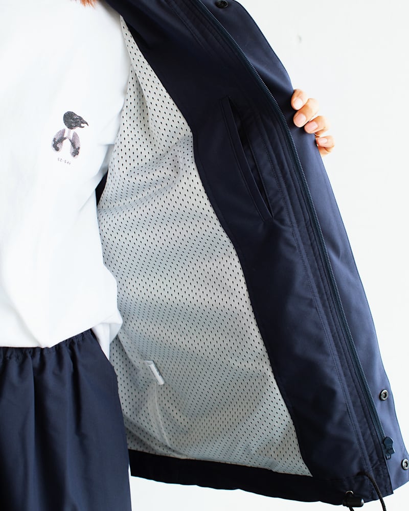 肌あたりが良くなるよう、身頃部分のみメッシュ素材の裏地付き。