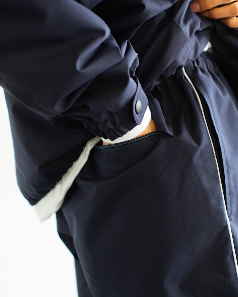 裾のジップを開けるとワイドパンツにもなる優れもの。