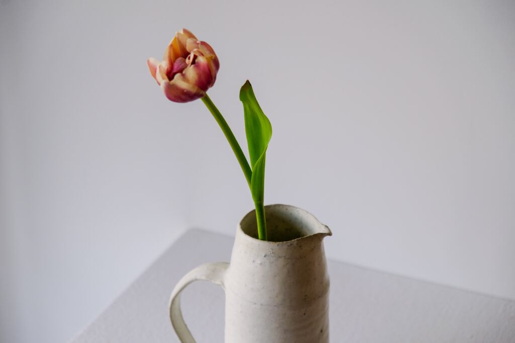 ピッチー型の花器。お水を入れてお使いただけます。
