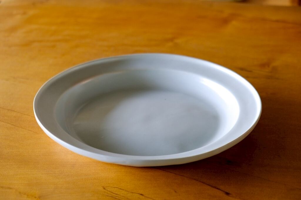 大江憲一さんのシンプルで使いやすい形状のリムプレートはカレーやパスタなどのお皿としてもちょうど良いサイズ。