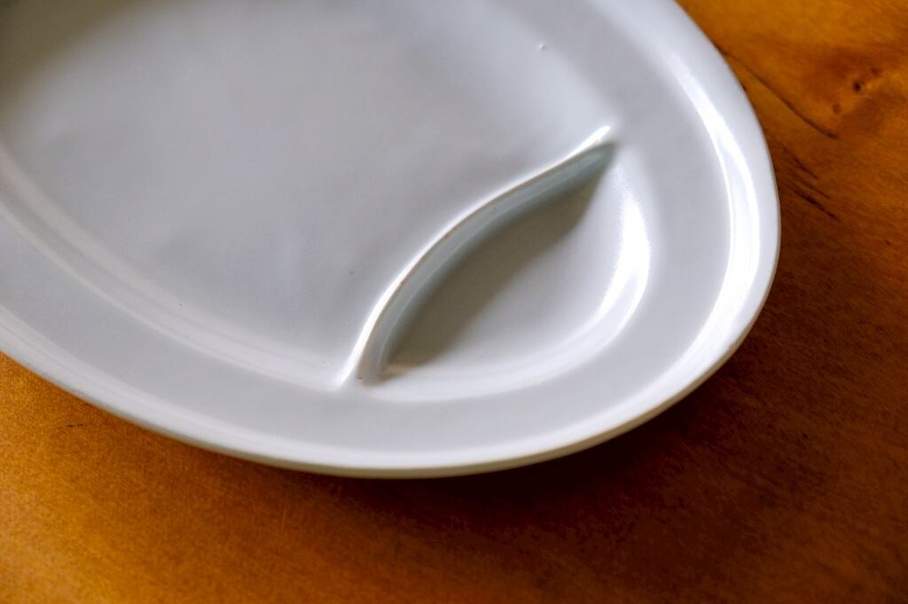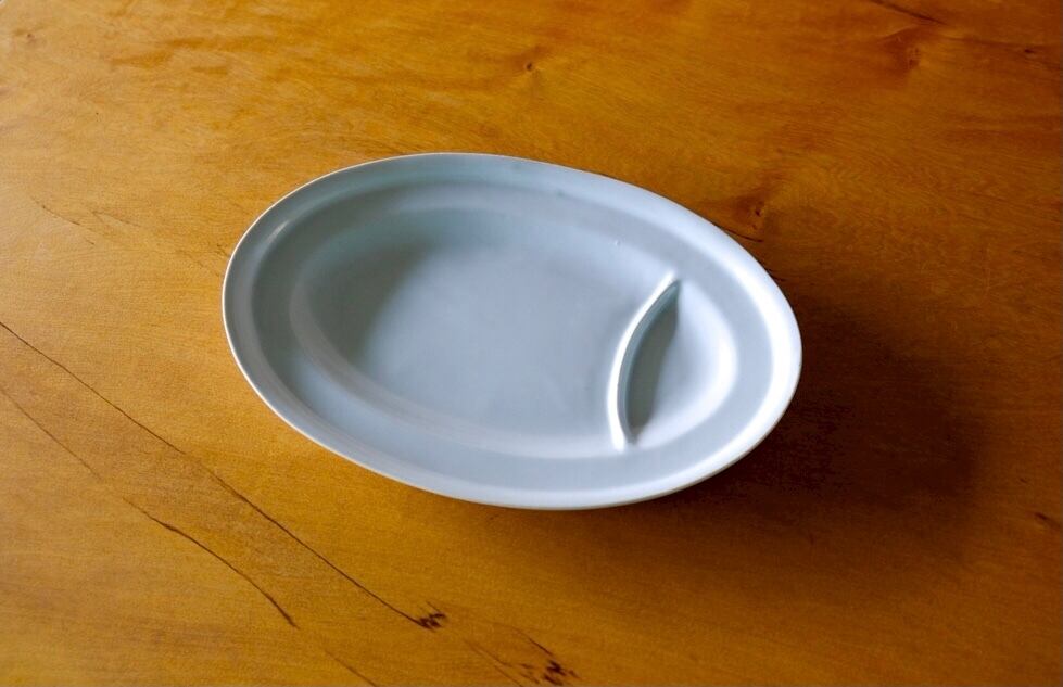 もちろん餃子用としてだけではなく、仕切りを活かしてさまざまなお料理にお使いいただけるオーバル皿です。